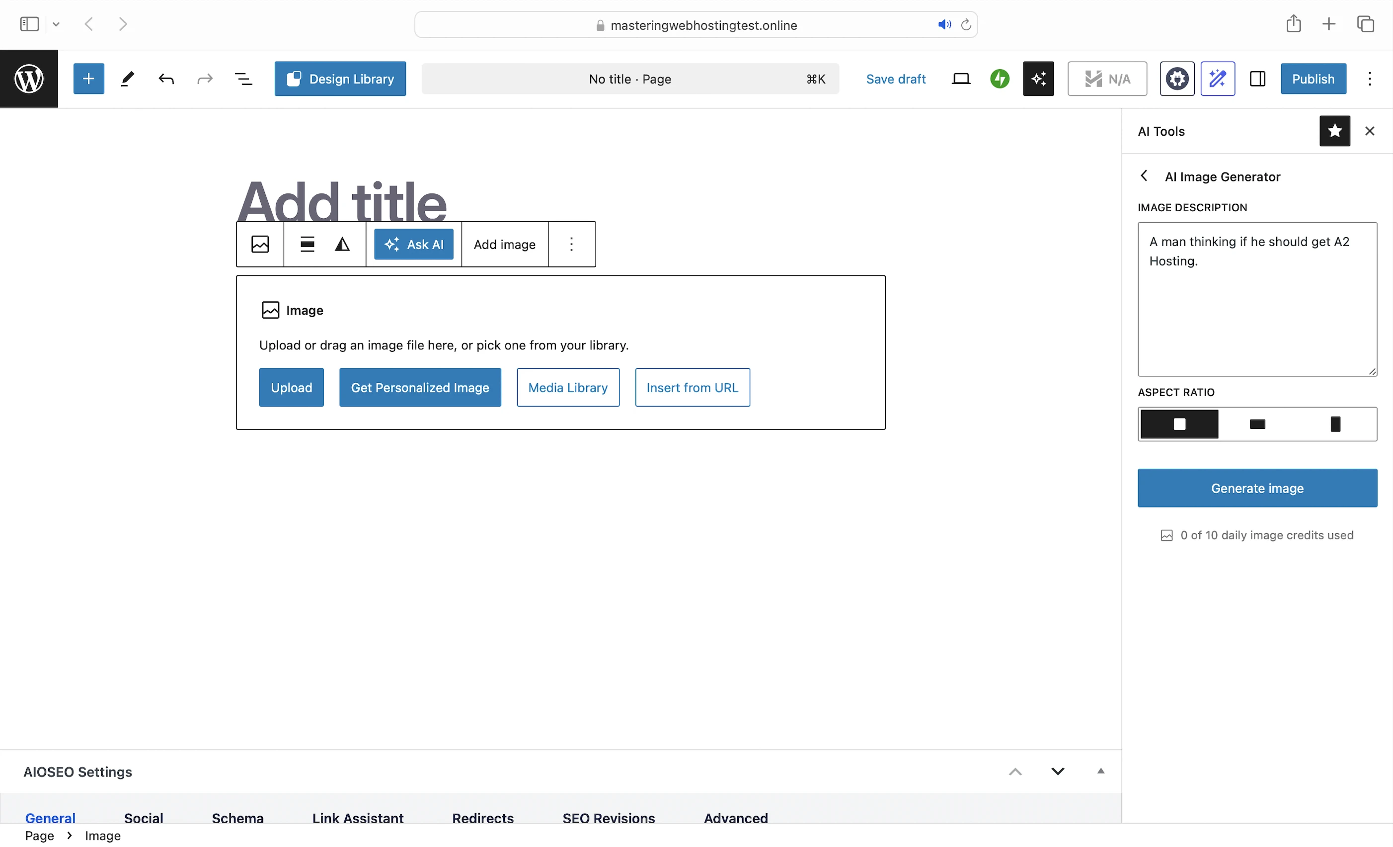 - AI-powered image generator: An L here because the image generated didn’t have anything related to A2 Hosting despite my prompt.