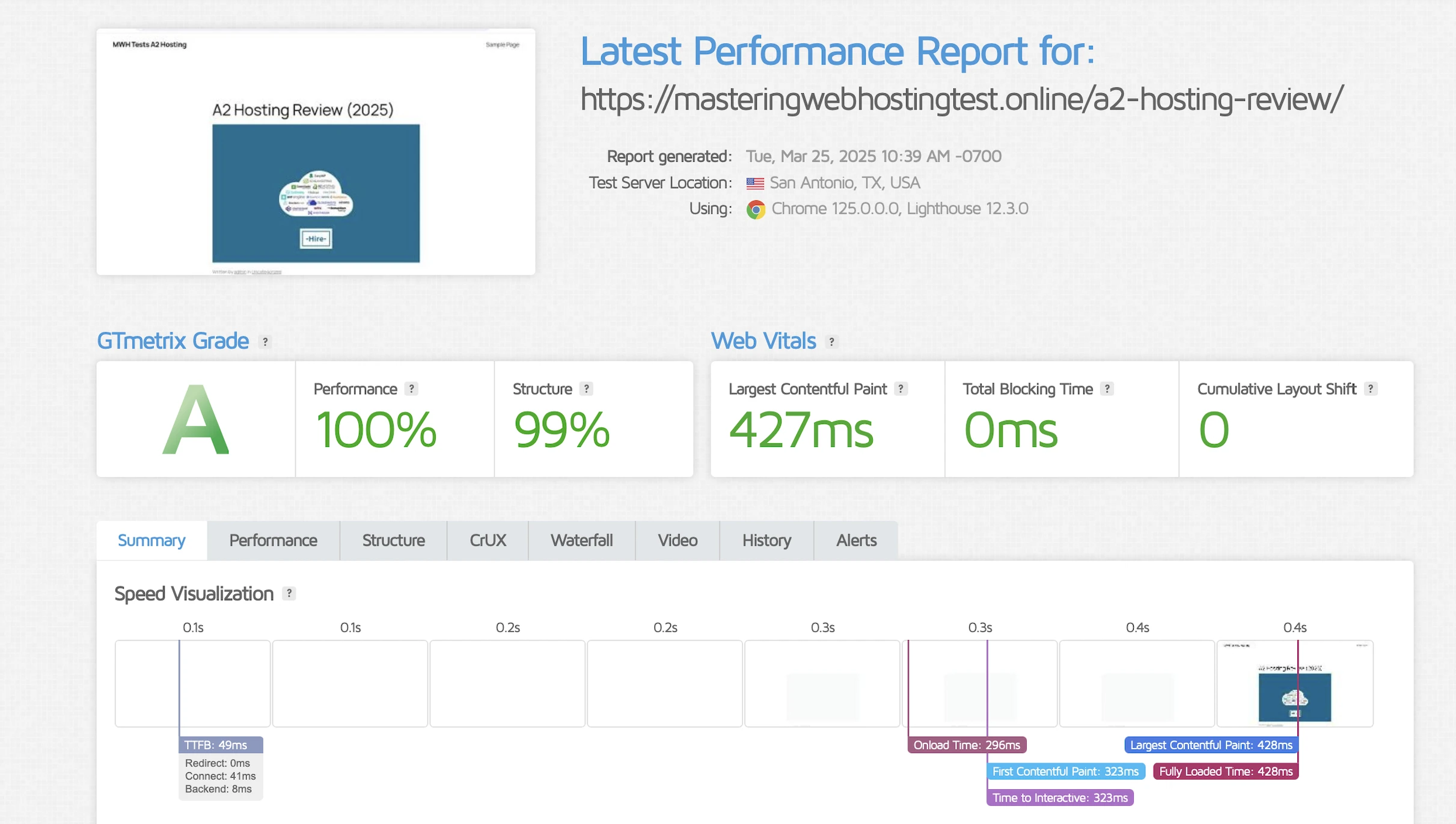In fact, GTMetrix said my LCP was a meh 427ms in Dallas, even though my TTFB was an awesome 49ms.