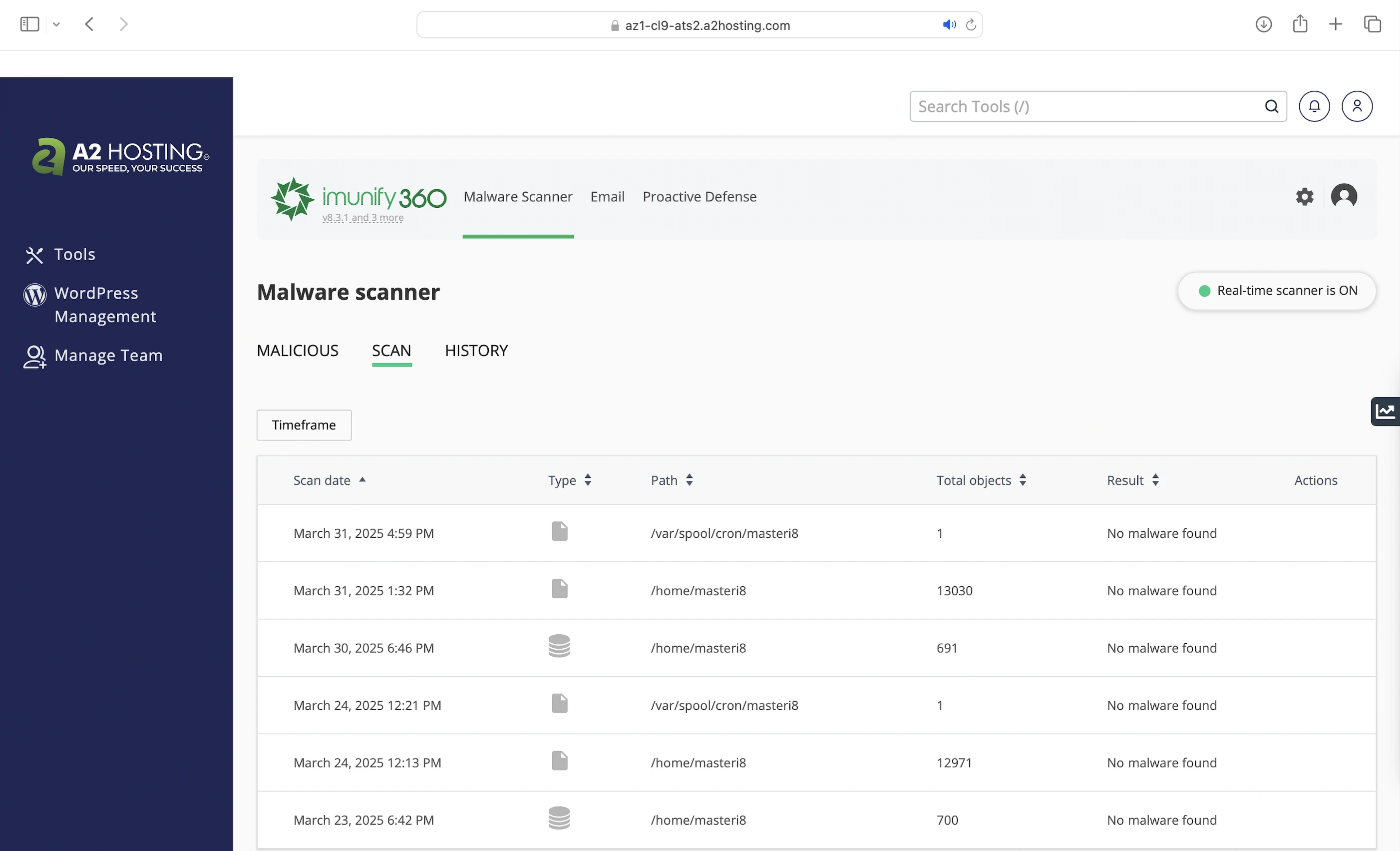 And if everything fails, A2 Hosting servers use Imunify360 to detect and remove malware. You can even quarantine suspicious emails.