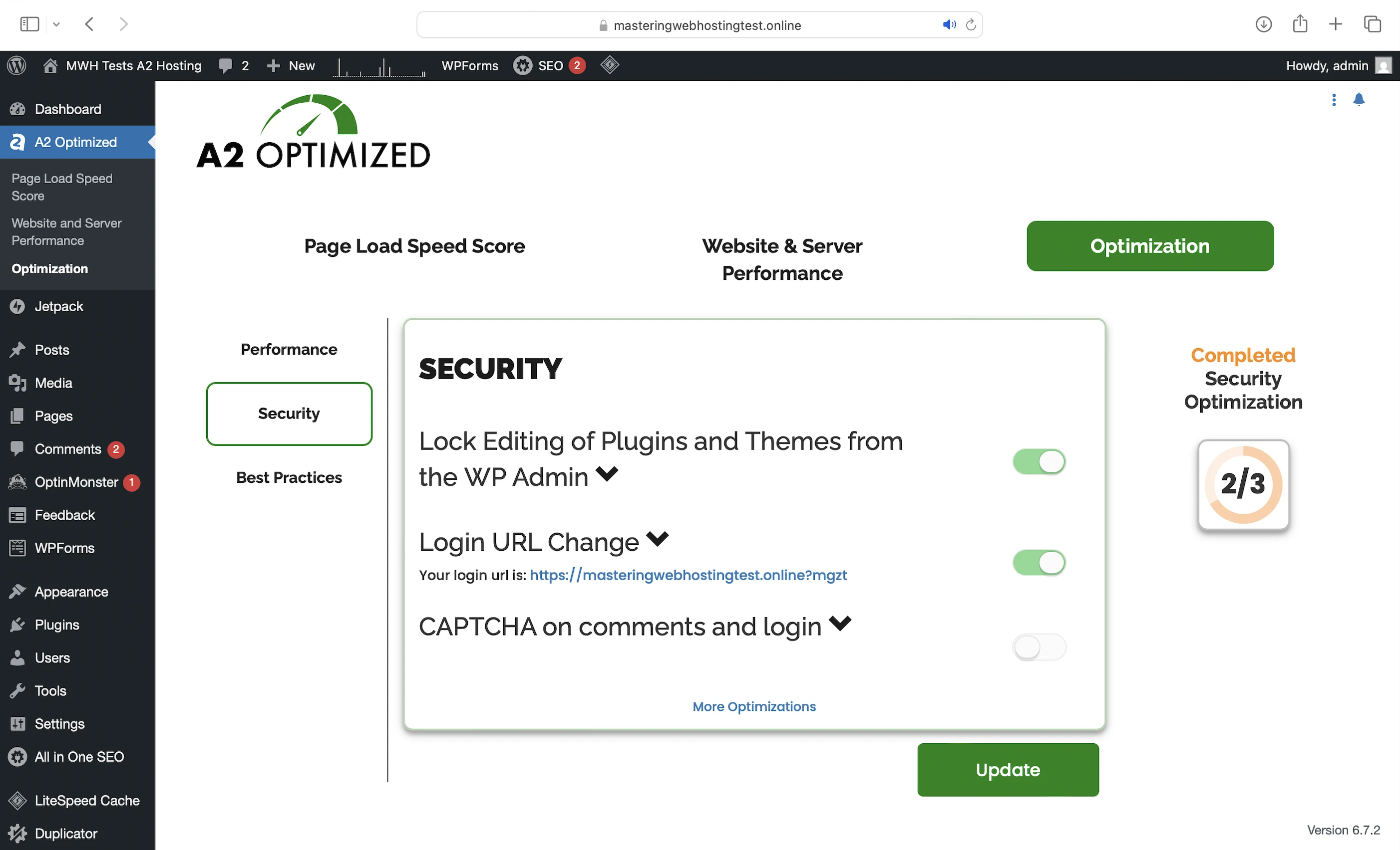 A2 Optimized also provides WordPress security by: