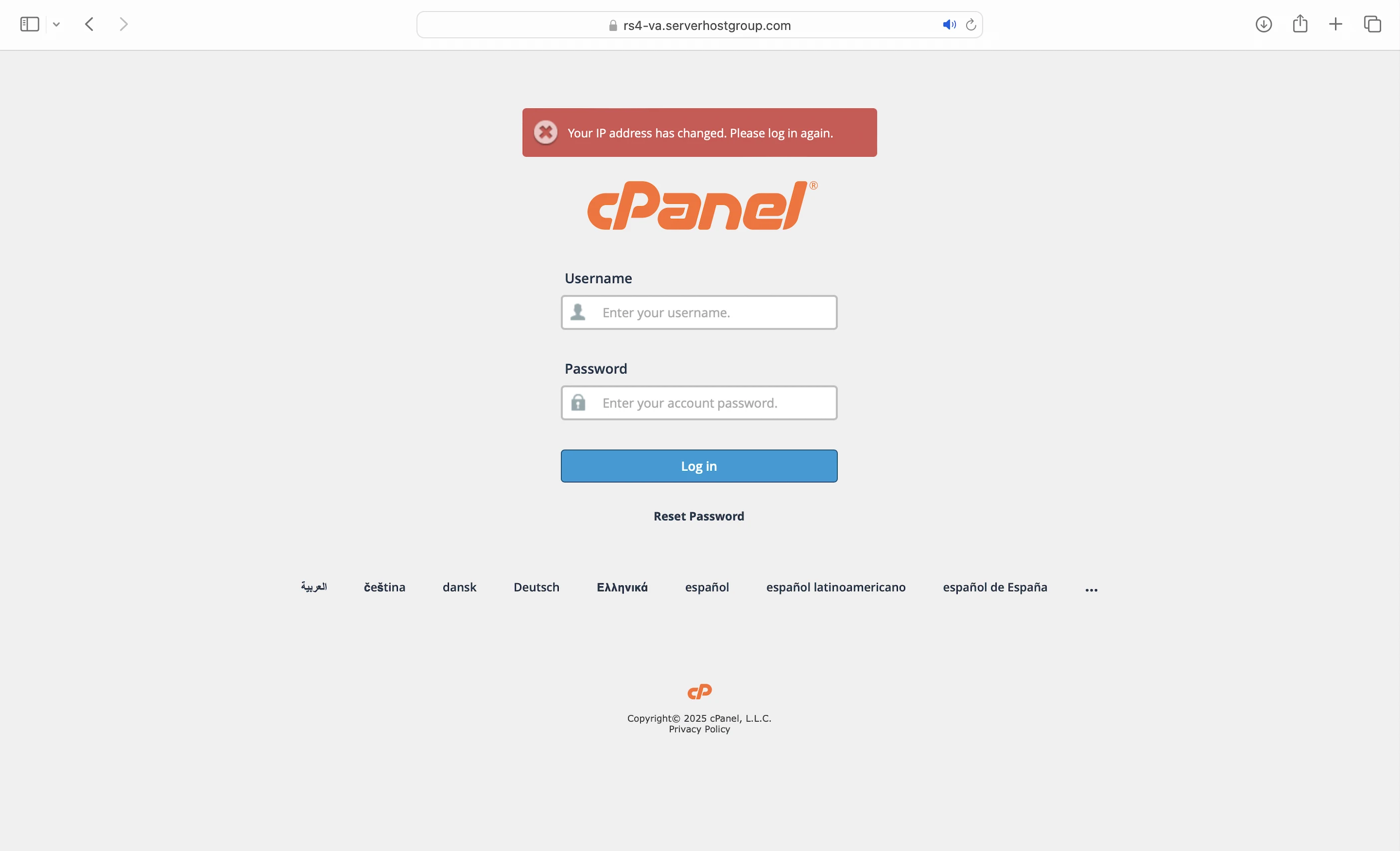 Static IP Address Needed to Log Into cPanel