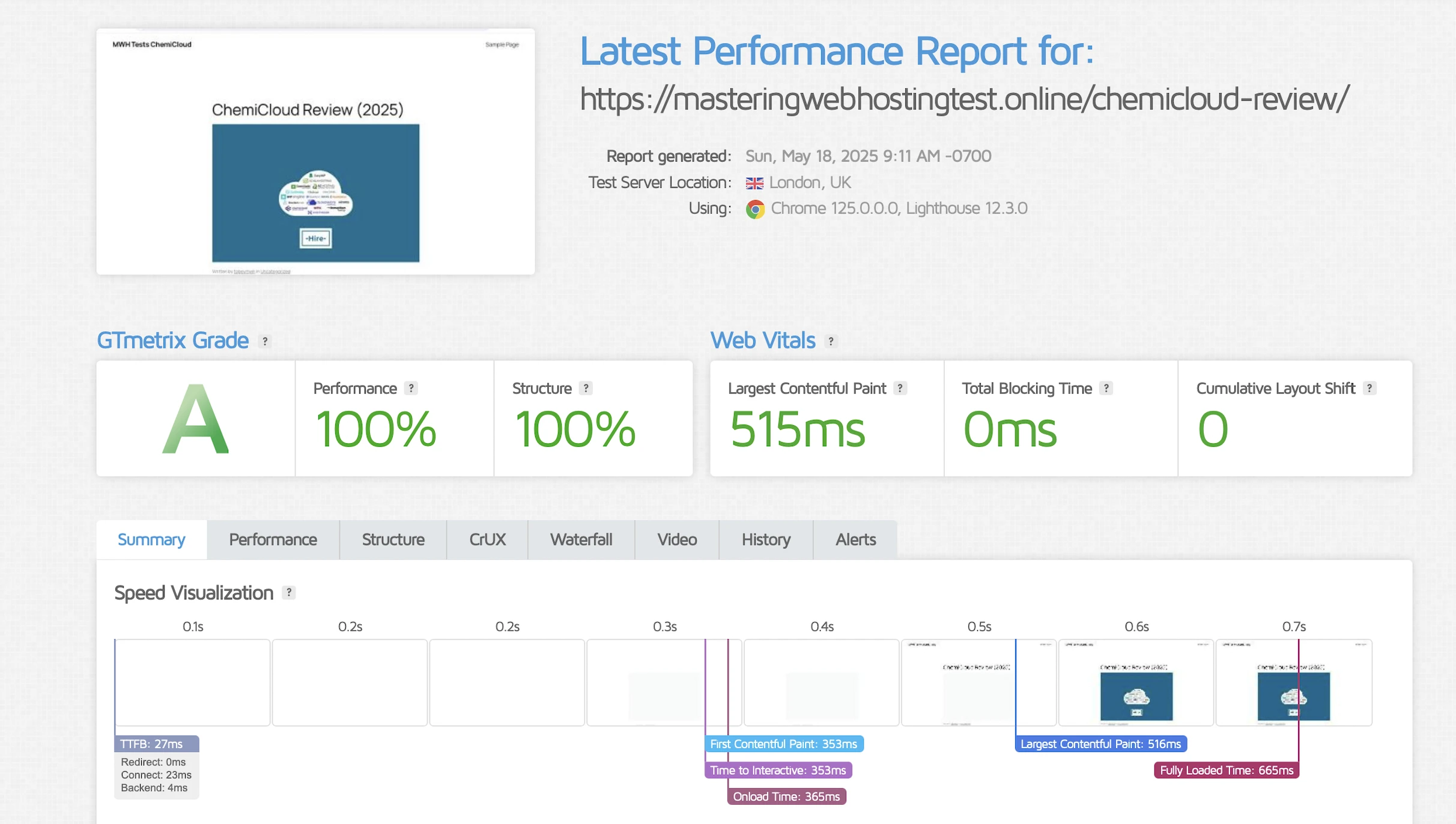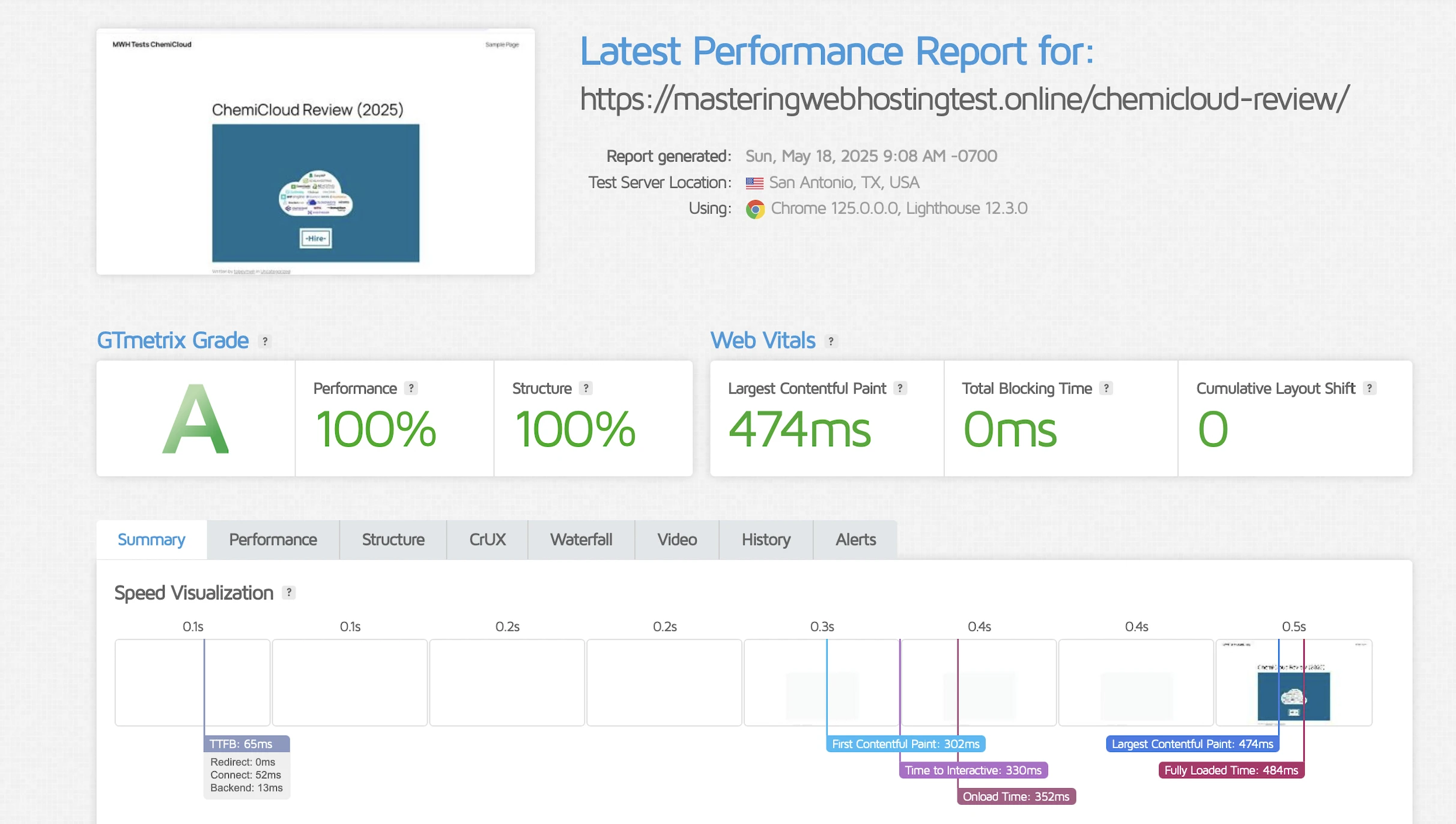 GTmetrix reported that my Largest Contentful Paint (LCP) was a decent 474ms when tested from Dallas.