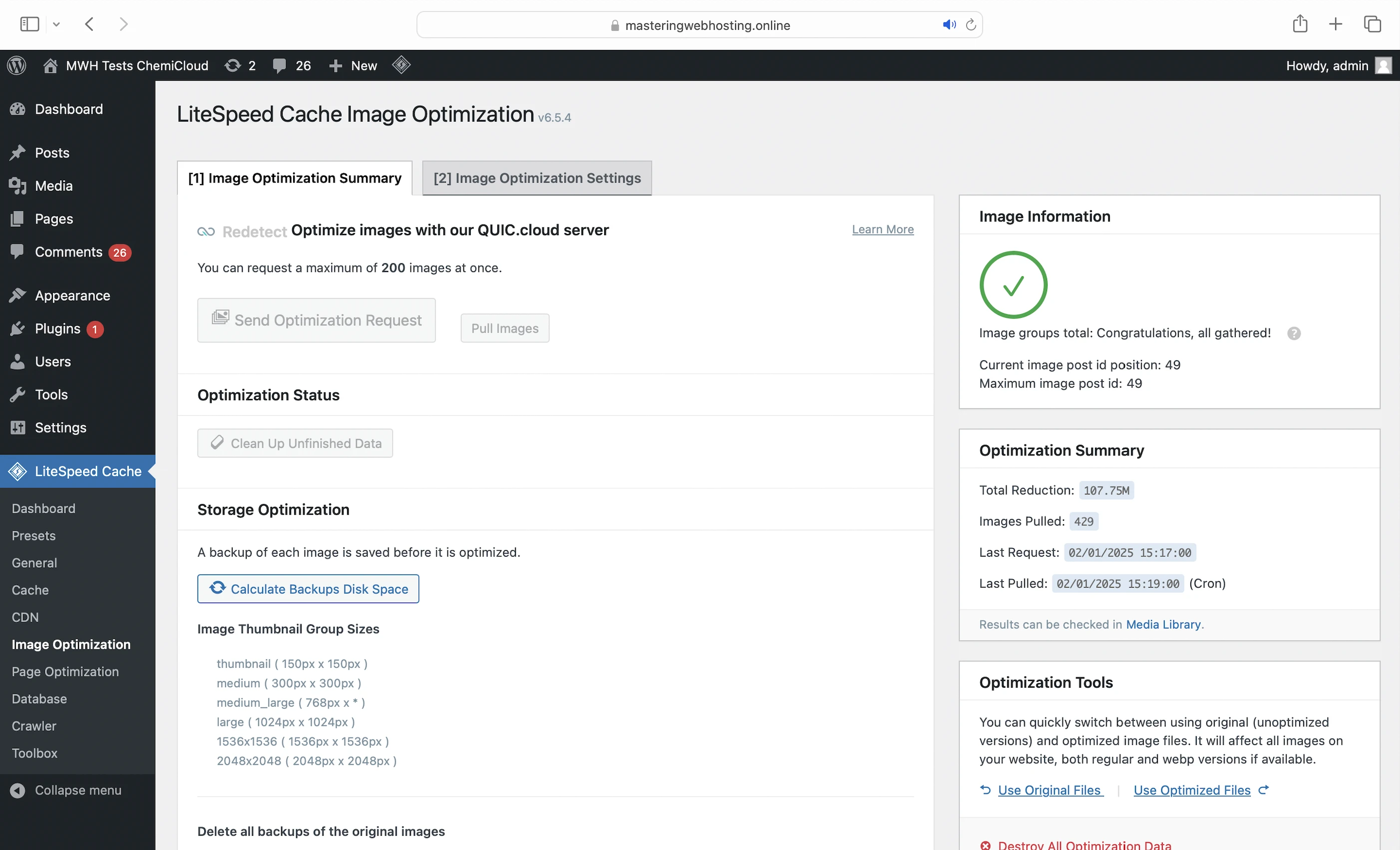 I signed up for the QUIC.cloud Standard plan, which includes: