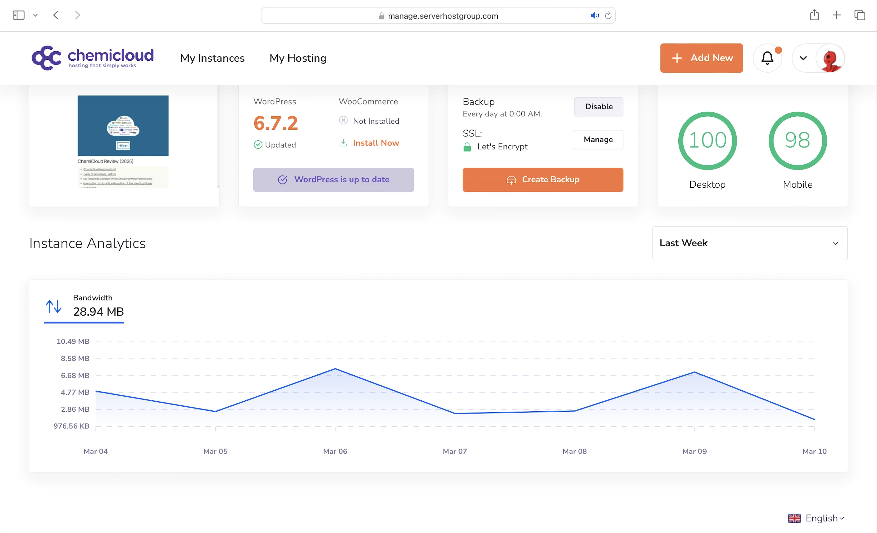 Let’s see how ChemiCloud did against my self-hosting:
