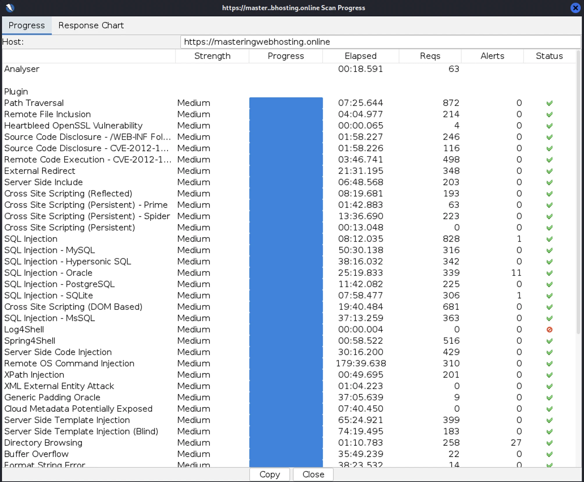 - SQL Injection – Oracle: 11 out of 339 attacks successful. Okay as ChemiCloud doesn’t use Oracle.