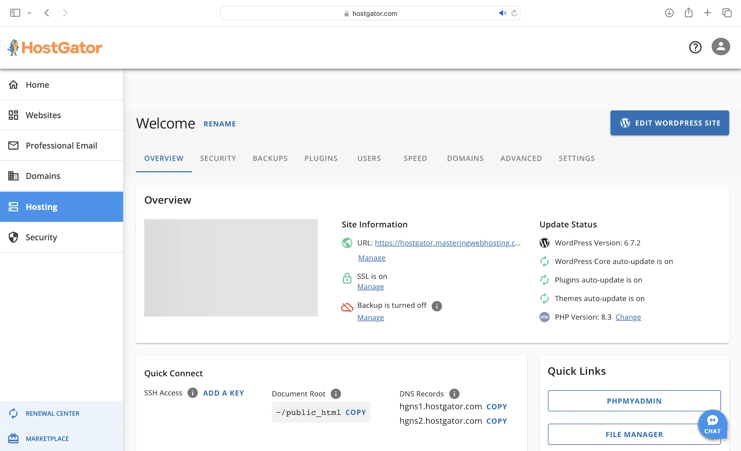 Slow, because HostGator plans weren’t as detailed as Bluehost’s, and l had to contact Support often just to fill in the gaps.