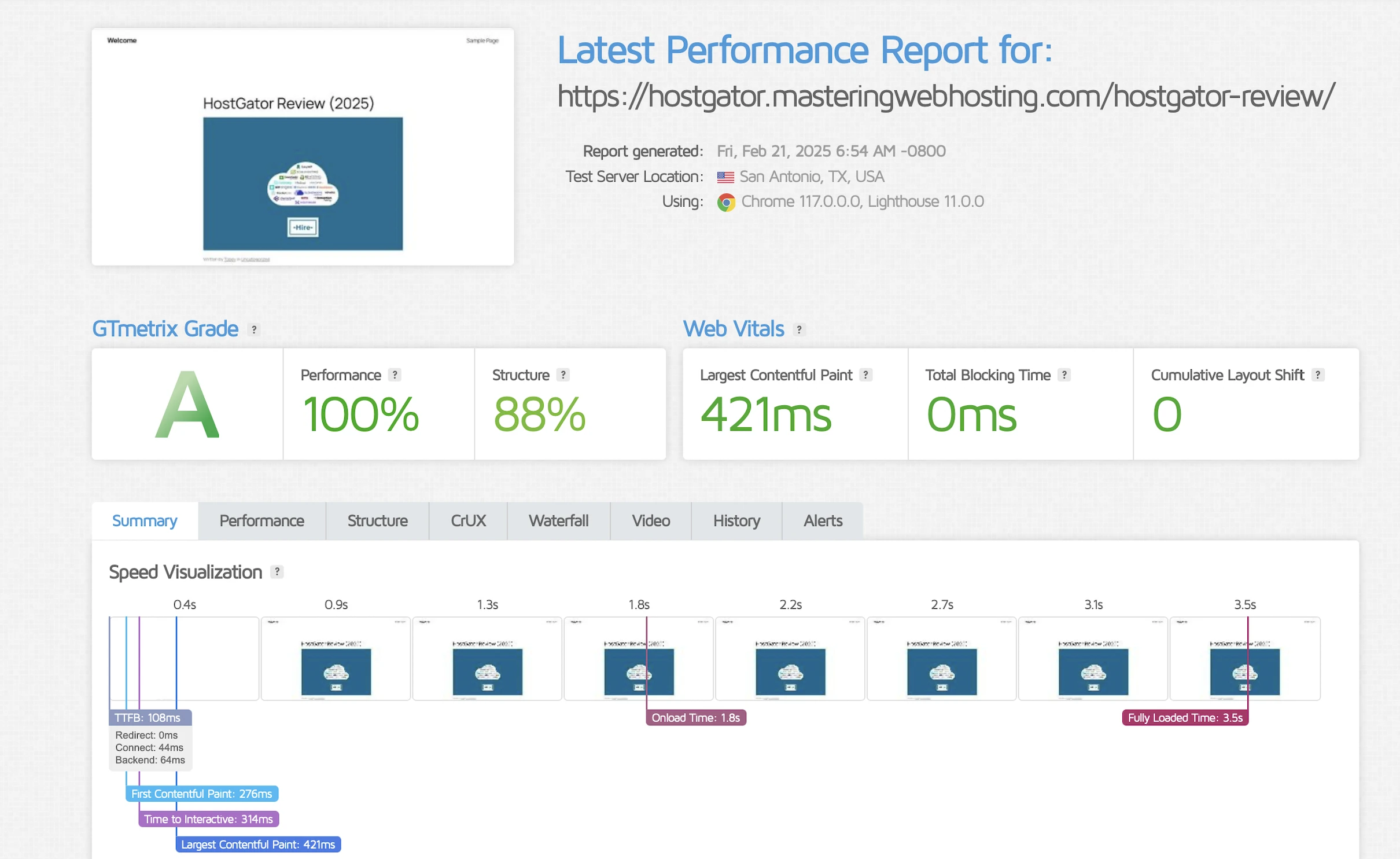 GTMetrix said my Largest Contentful Paint (LCP) was a really meh 421ms in Dallas and another meh 451ms in London.