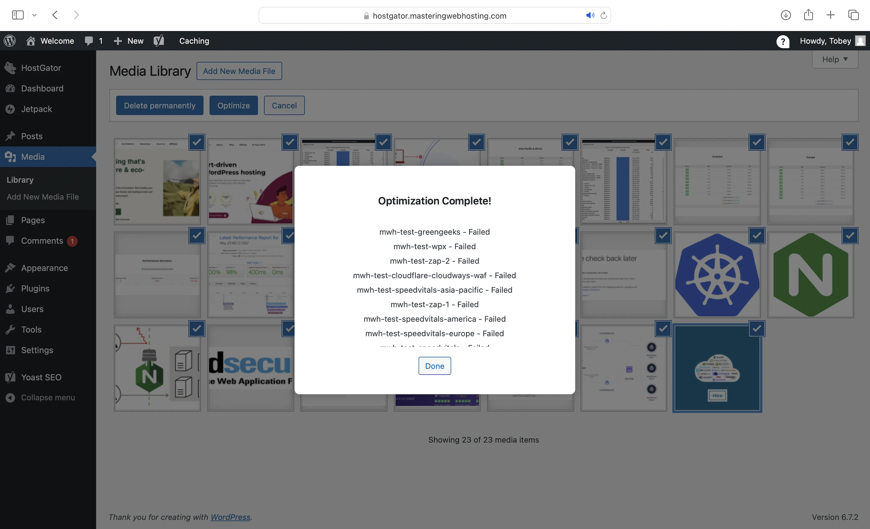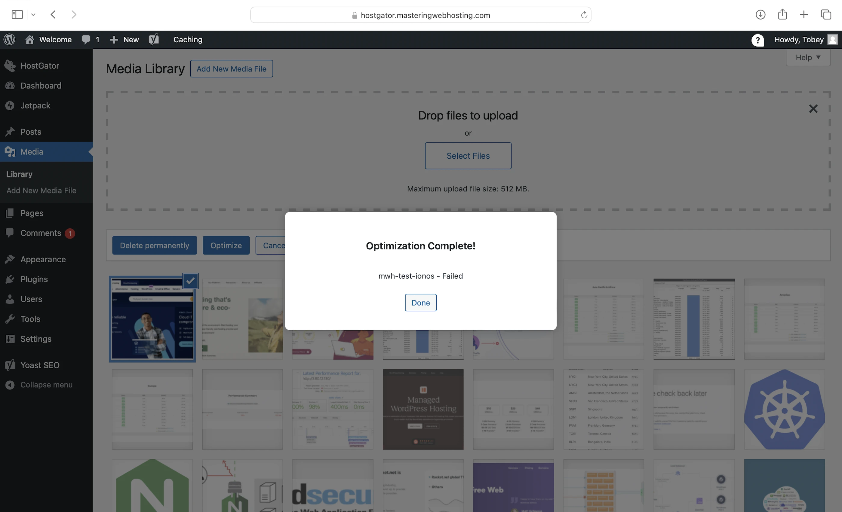None of my images (existing or newly uploaded) were successfully optimized using HostGator’s plugin.