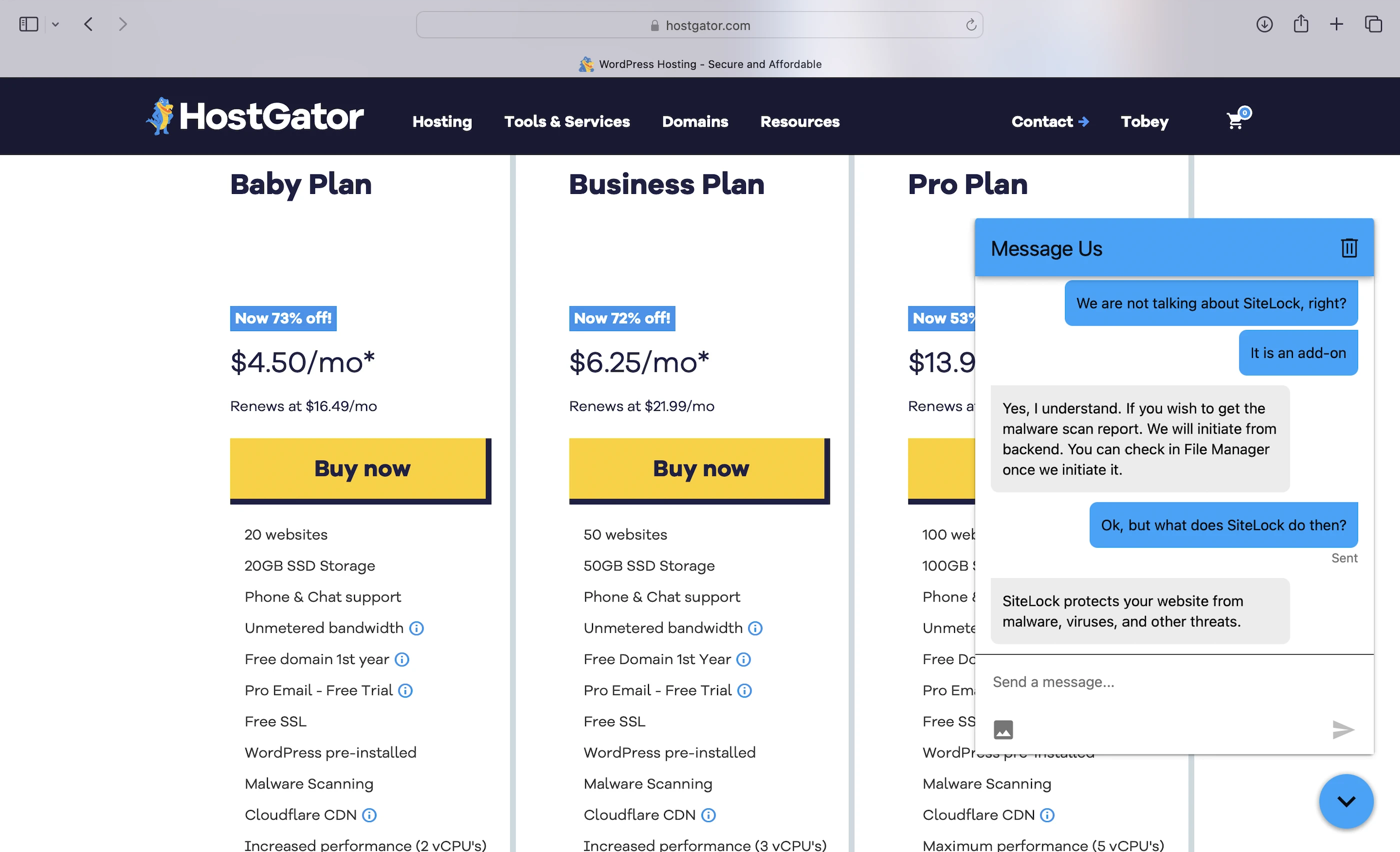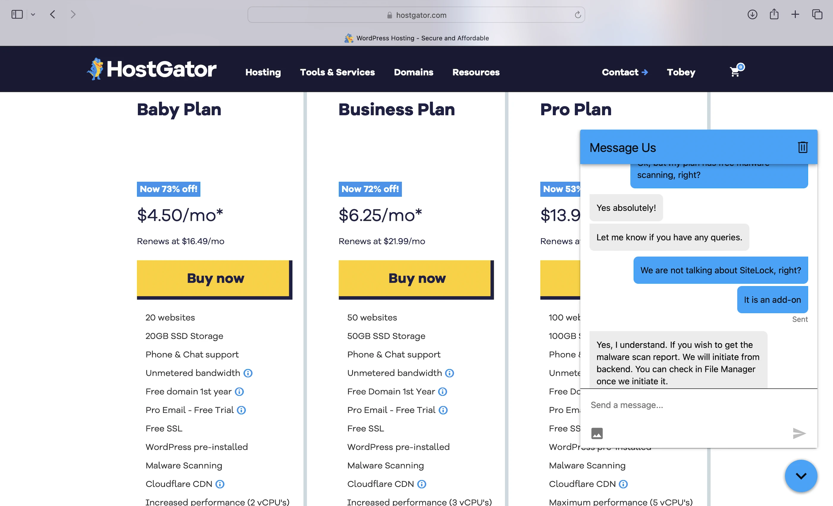 Wanna know how I know HostGator doesn’t offer any of the above? I had to contact Support for more details about my plan, because none of it was listed on its website.