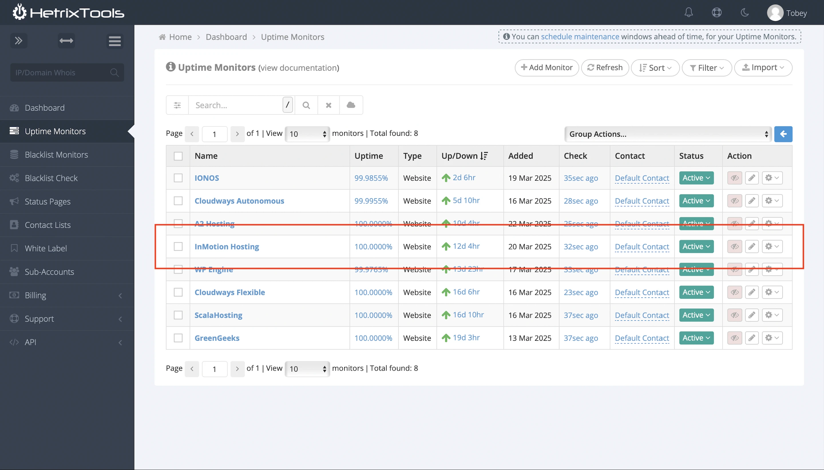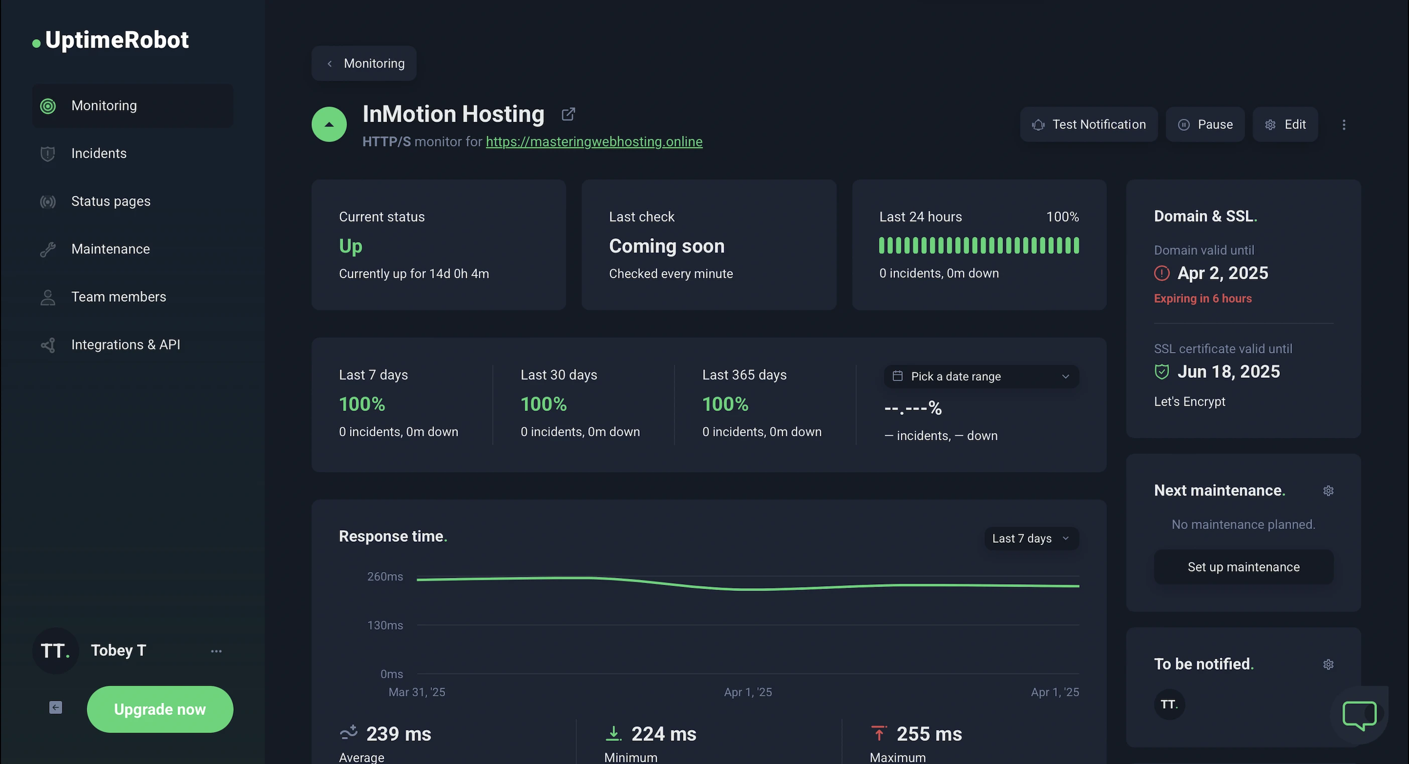 In the 14 days I was reviewing, UptimeRobot reported that my InMotion Hosting website enjoyed 100% uptime after checking on it every minute.