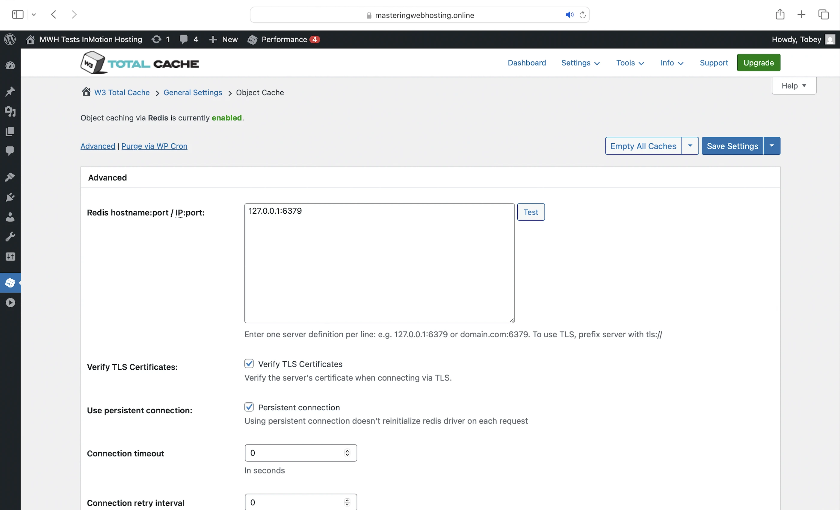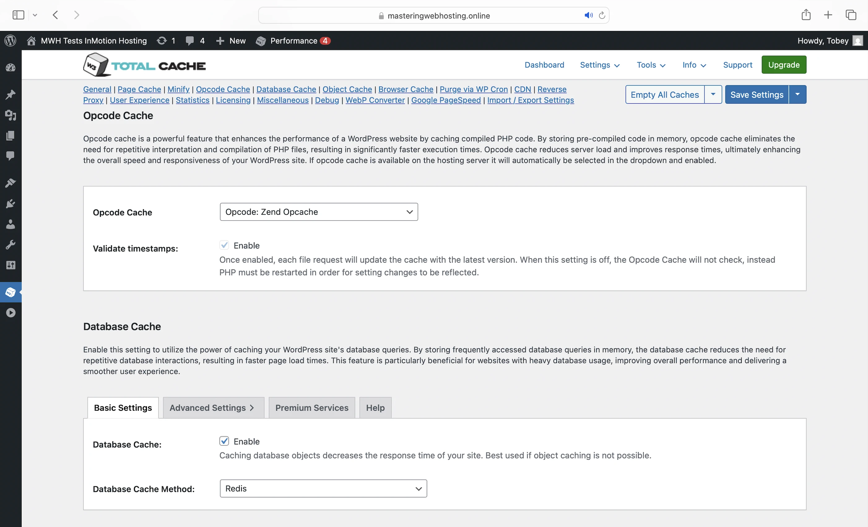 - Redis: Object caching for up to 32MB of frequently accessed data (eg. posts) in memory. It works with the free W3 Total Cache plugin recommended by InMotion (see below).
