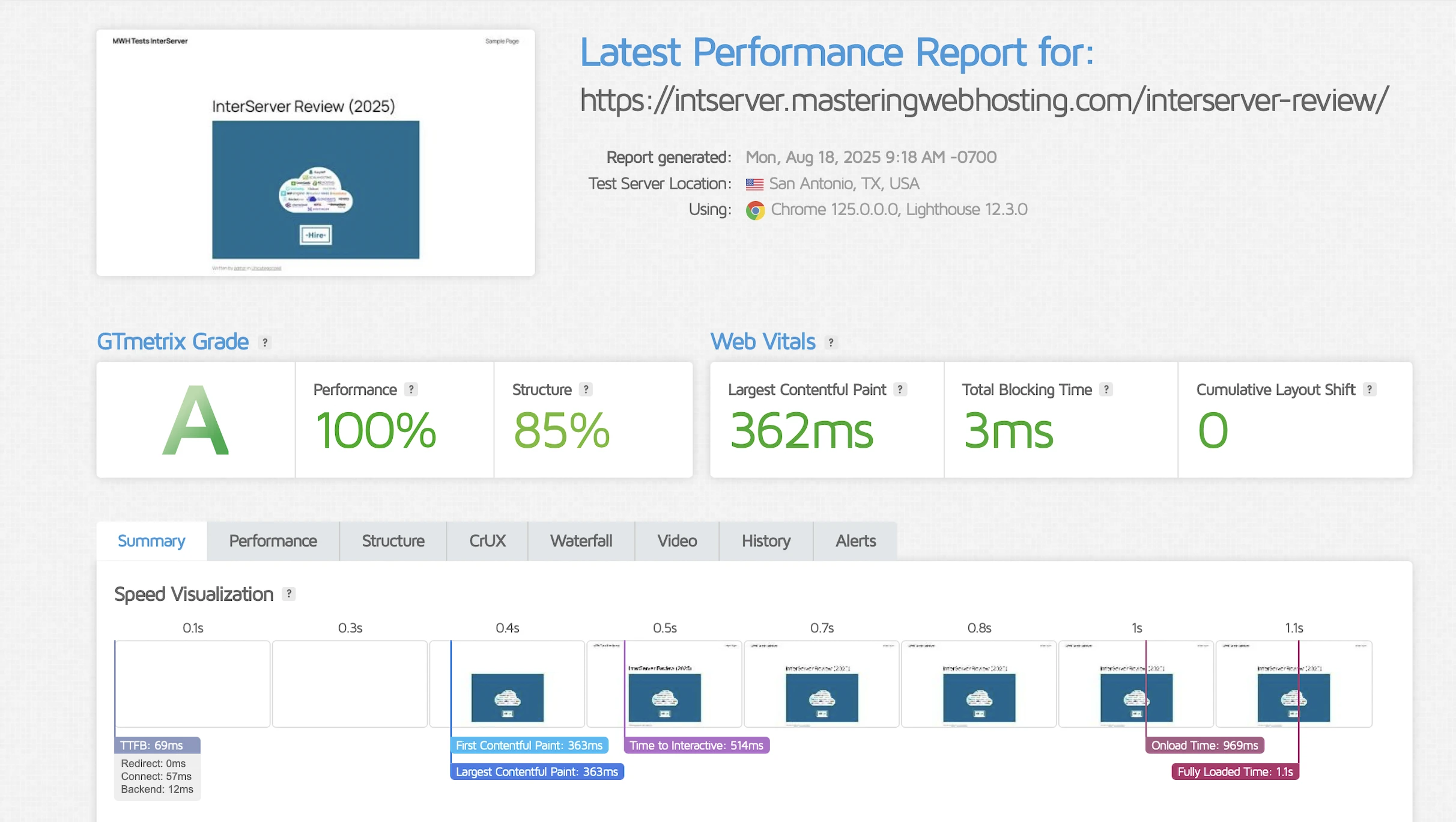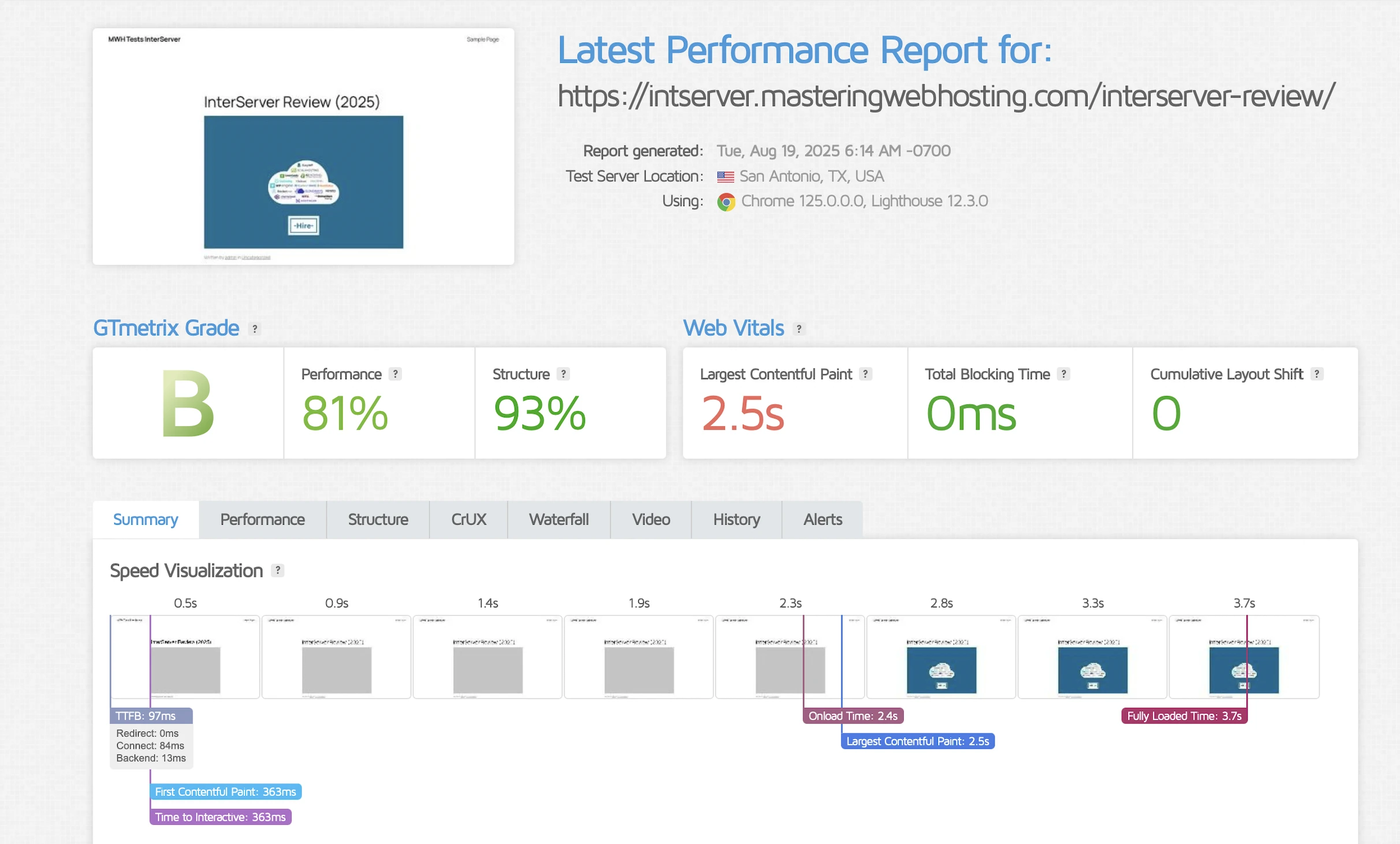 GTmetrix reported that my Largest Contentful Paint (LCP) was a decent 362ms in Dallas.