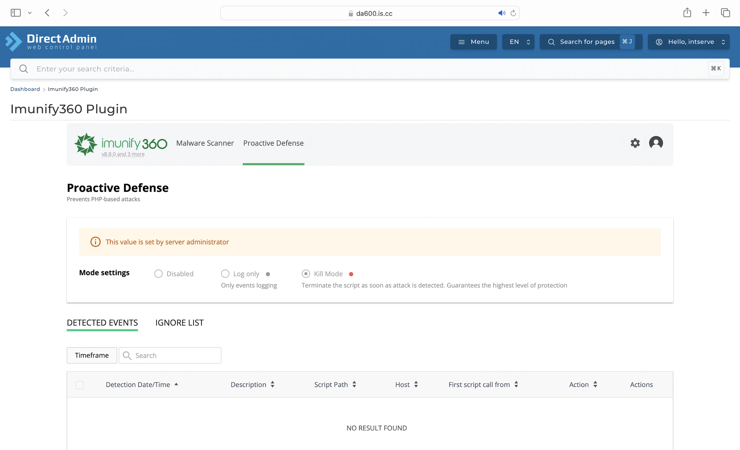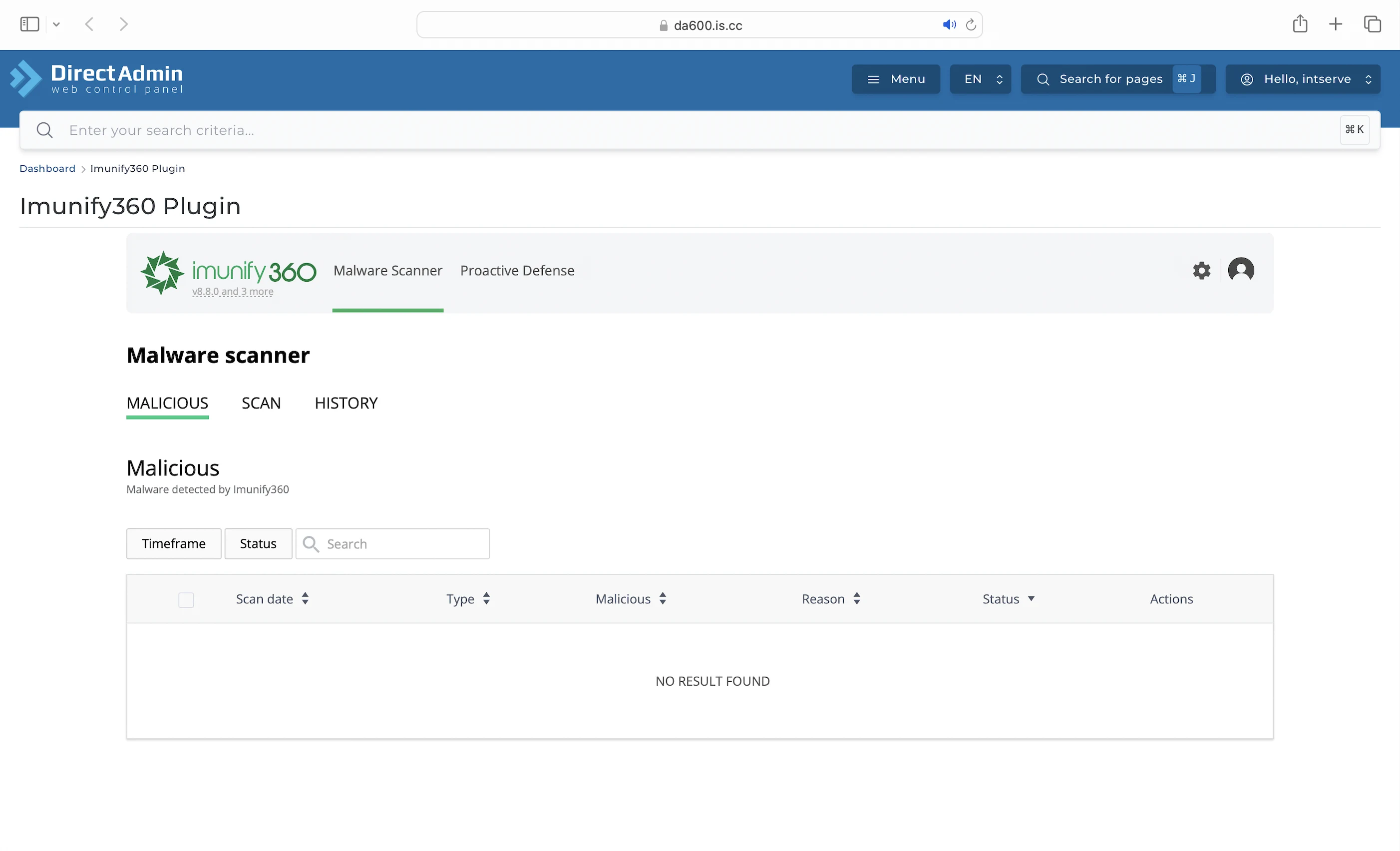 On the reactive side, Imunify360 regularly scans your website for malware and other signs of compromise.