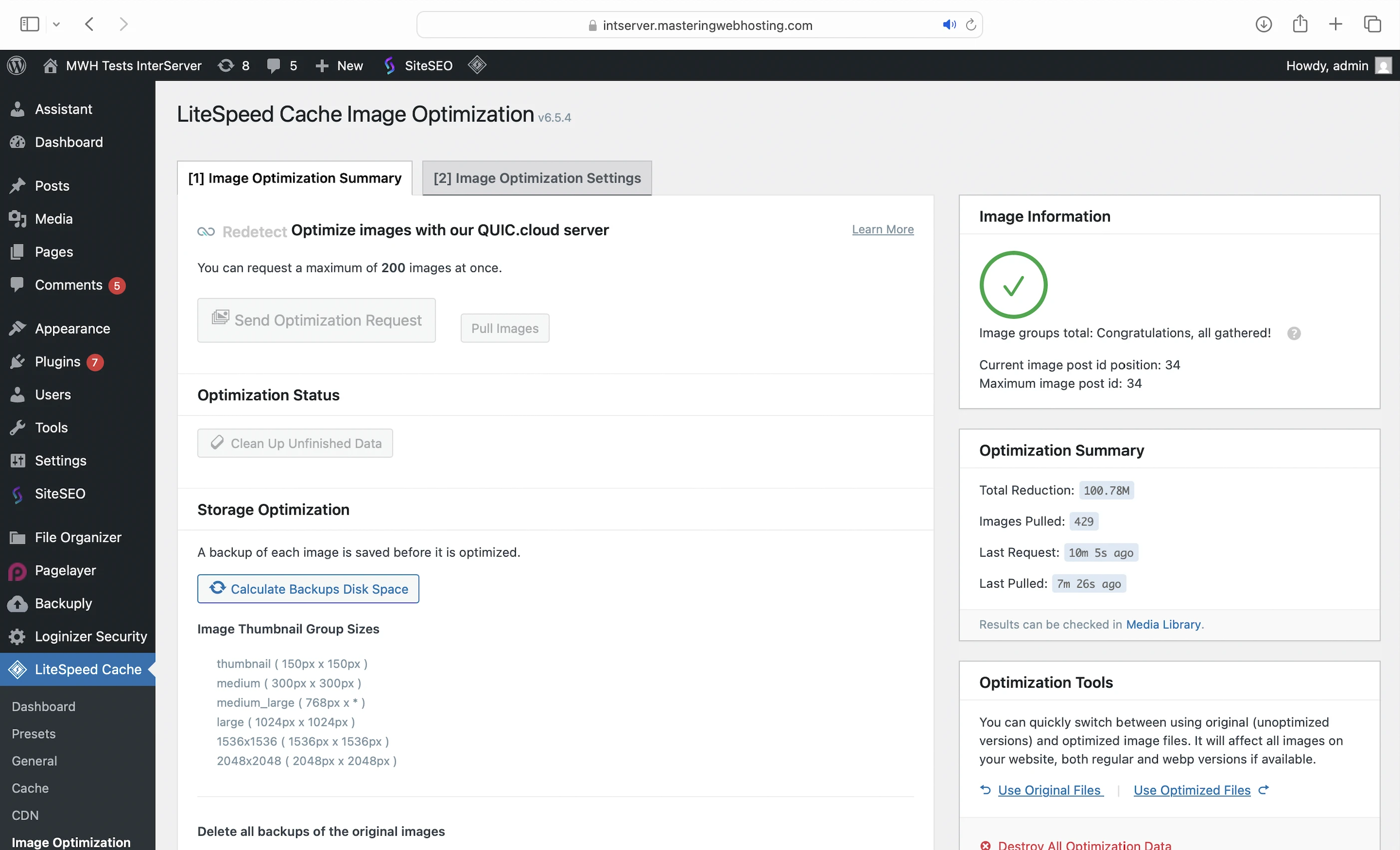 - Image optimization: Reduces image sizes (mine shrank by up to 101MB in total), which improves loading speed.