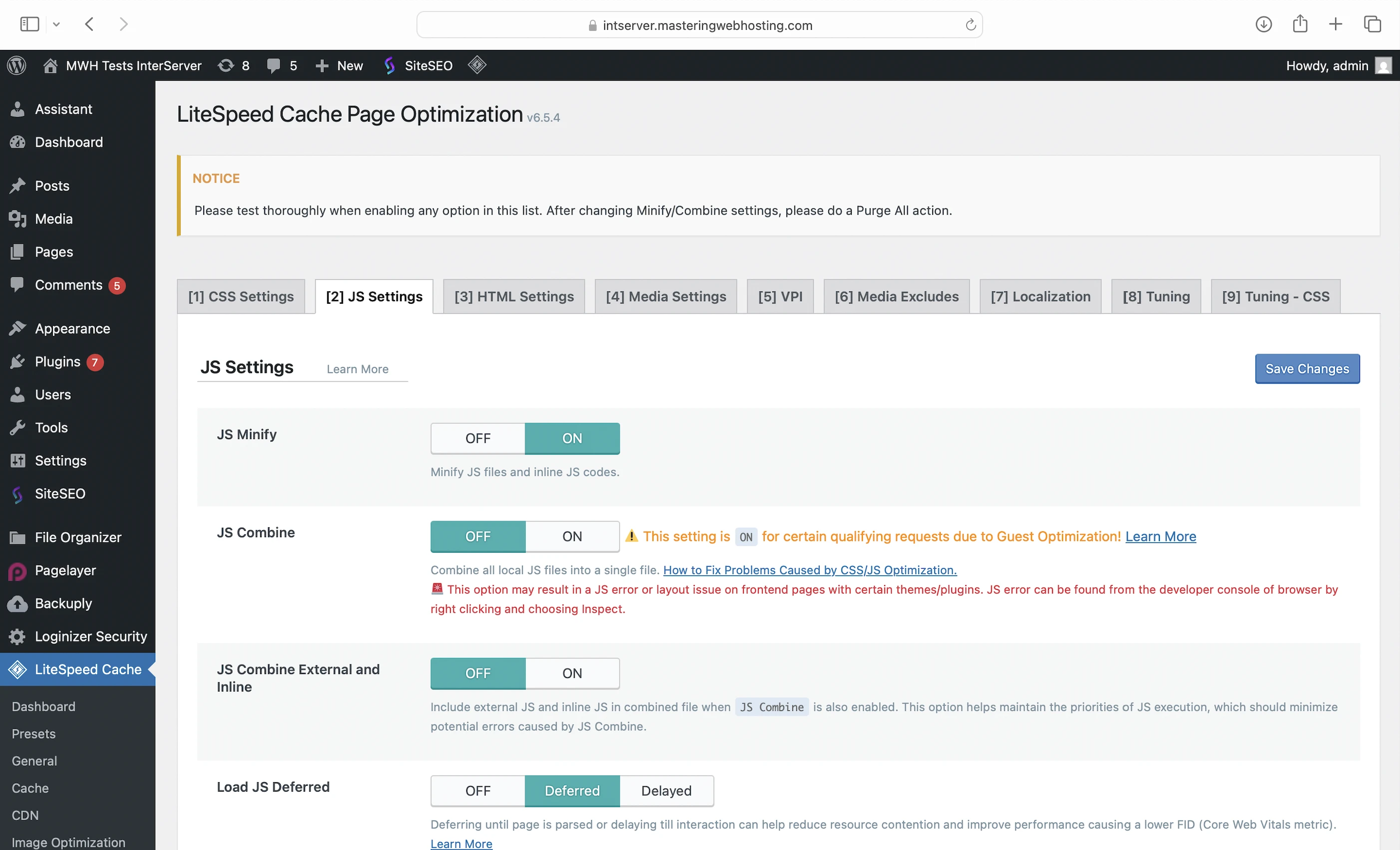 - Deferred JS loading: Ensures that your HTML loads and renders correctly before JavaScript files are executed. Some JavaScript files can block the rendering process, making your site load more slowly or appear broken. By delaying certain JavaScript files, LiteSpeed Cache helps your website load more smoothly.