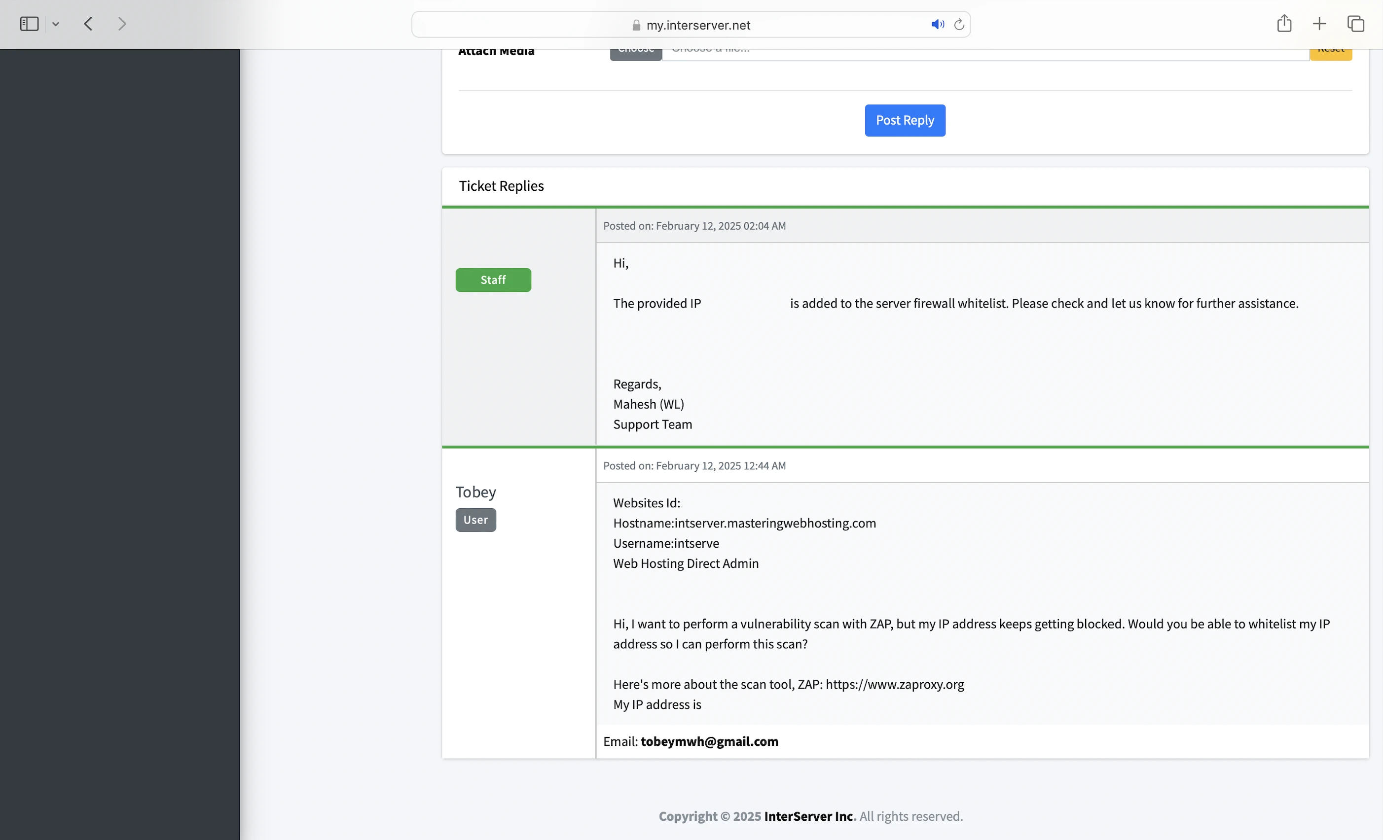 Like WPX, InterServer blocked my ZAP server’s IP address after the first wave of attacks.