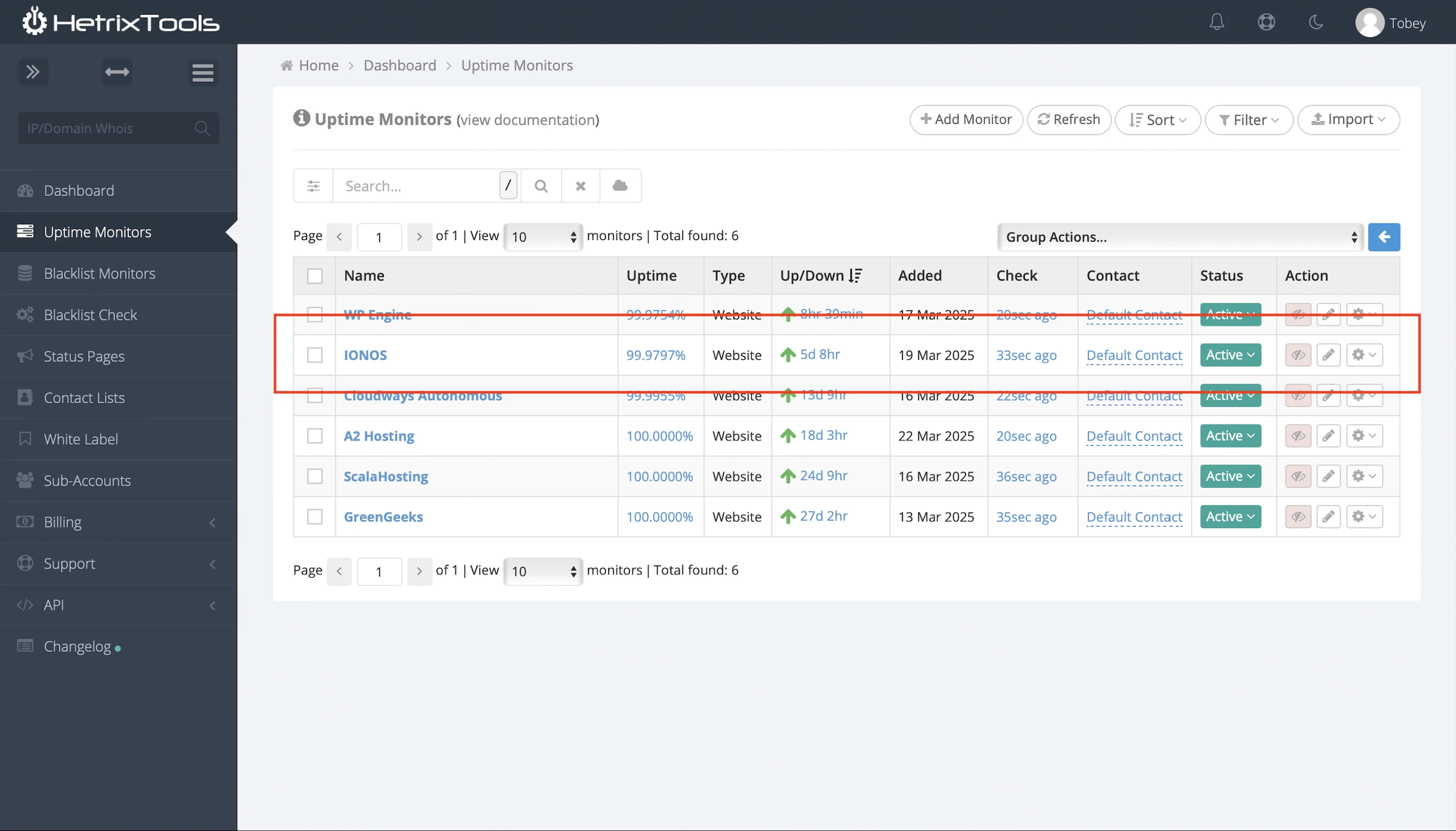 HetrixTools reported almost the same results after monitoring my site at 1-minute intervals for 20 days – 99.98% with 2 downtimes lasting 5 minutes.