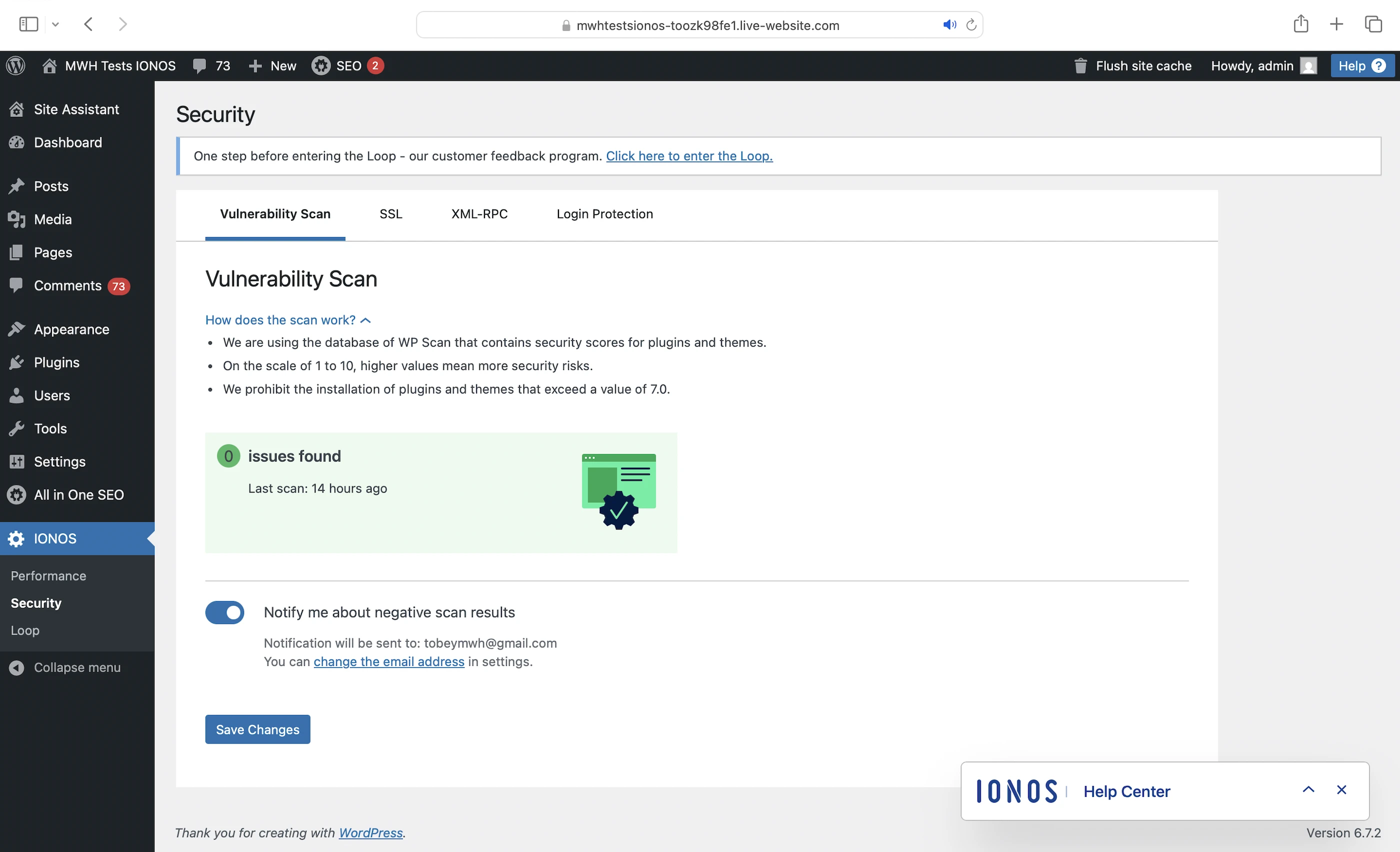 - Vulnerability scanning: Powered by the WPScan database, which assigns security scores ranging from 1 to 10 for all plugins and themes. Higher scores mean higher security risks. Upon installation, IONOS checks whether a plugin or theme has a score higher than 7.0. If it does, IONOS proactively prevents the installation.