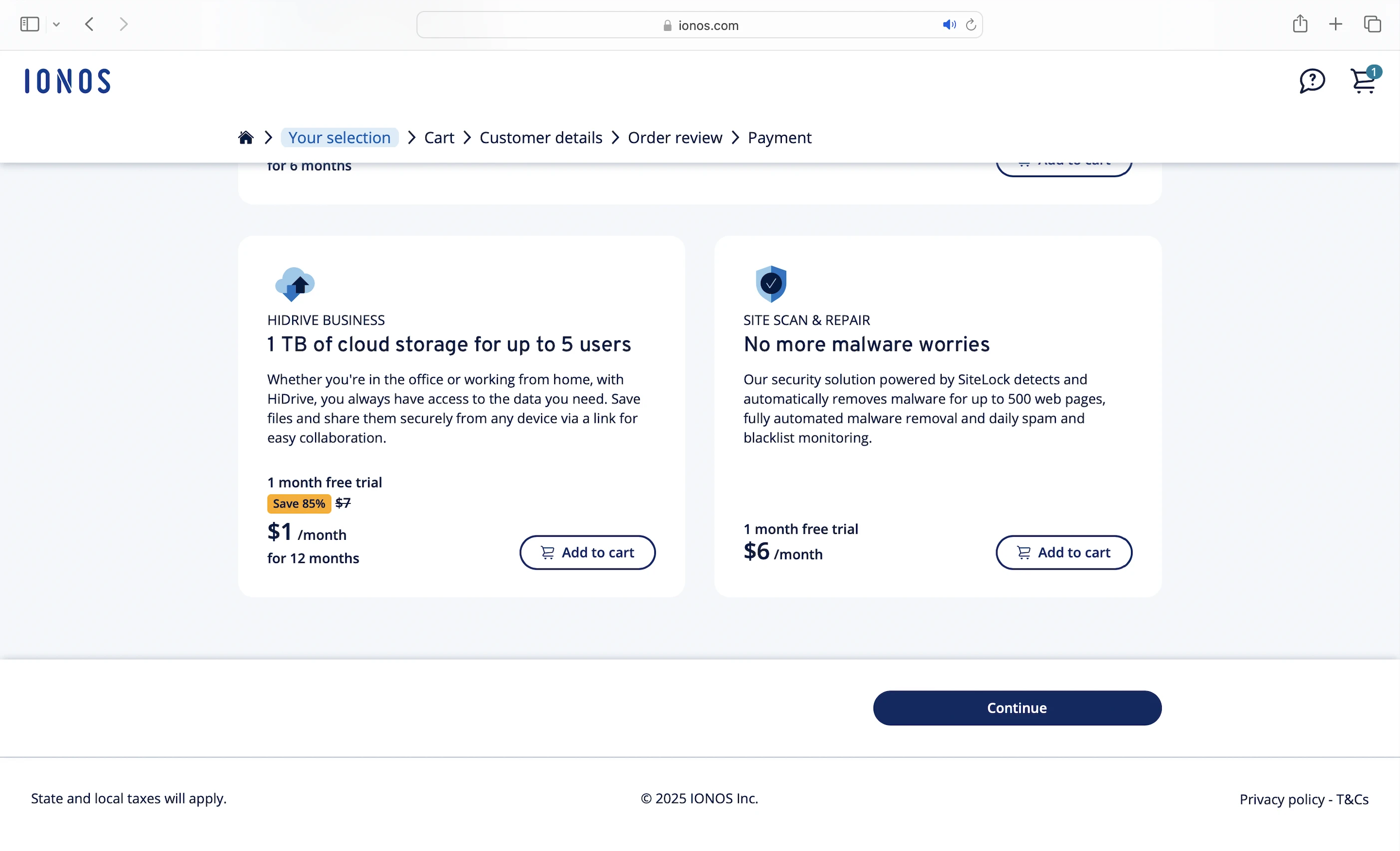 Like HostGator’s, IONOS’ website gives the impression that malware scanning (SiteLock) is included for free with its hosting plans. I got my plan expecting this, only to find out it’s actually a paid add-on.