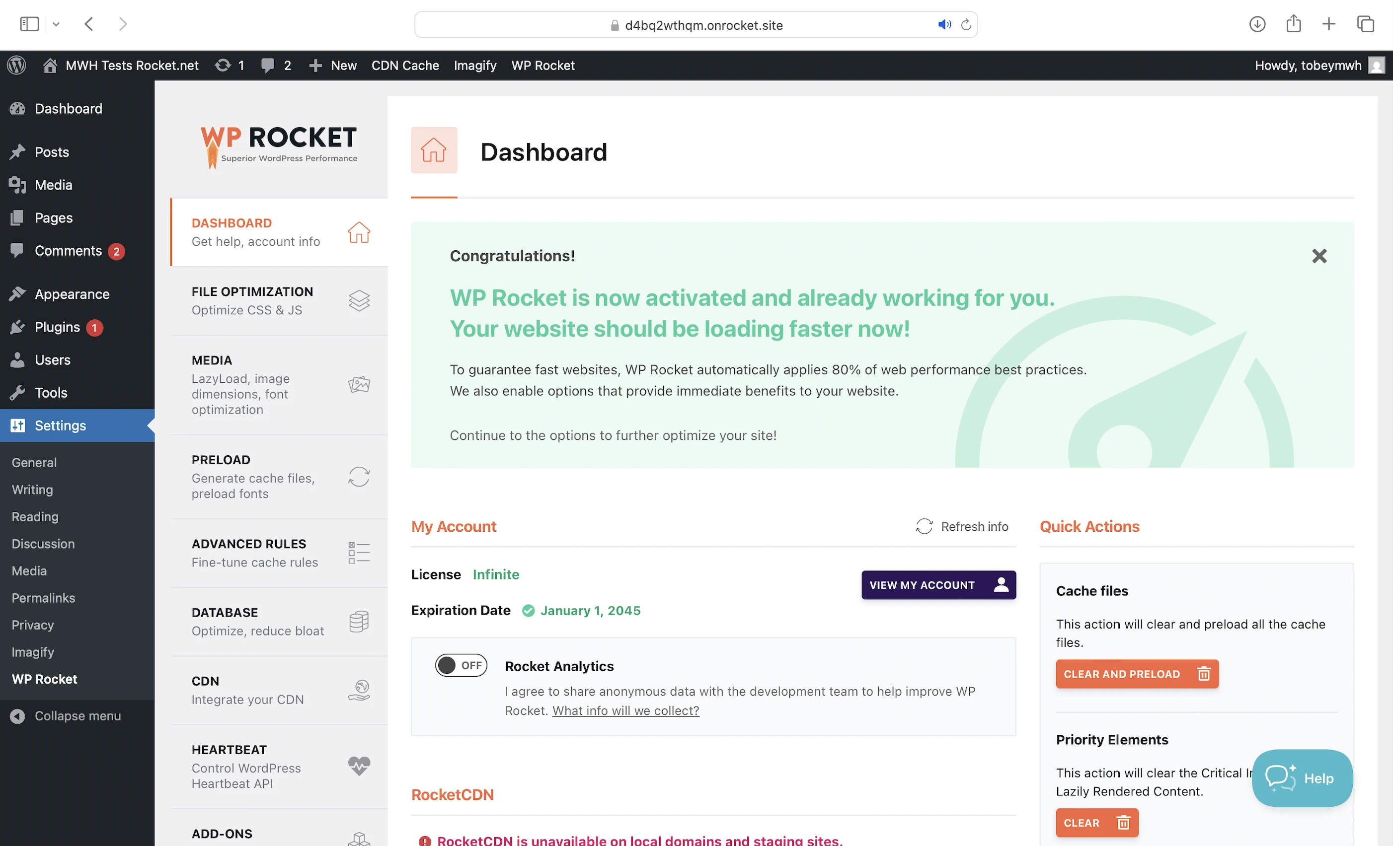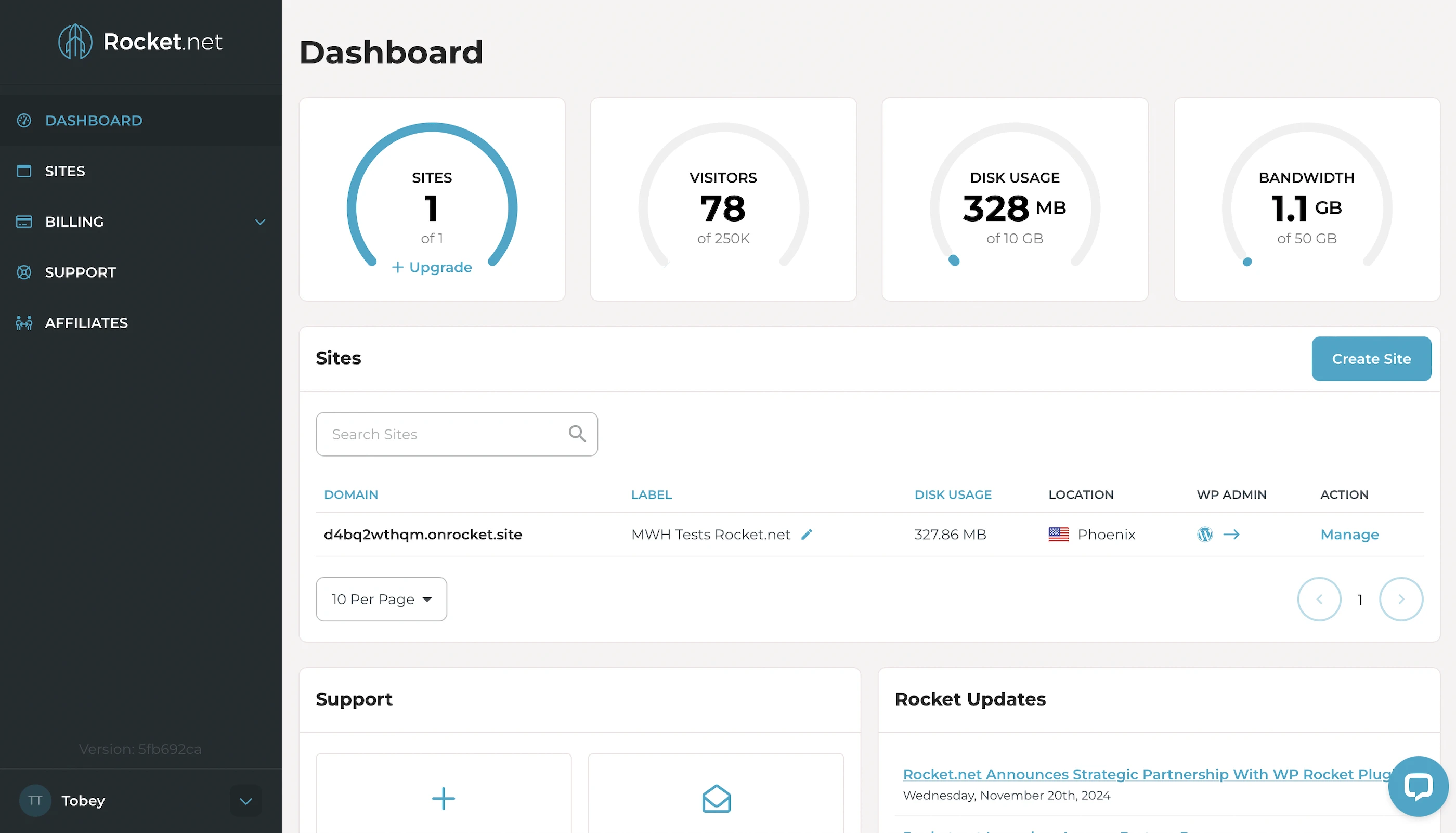 I think it’s so simple and uncluttered because there is nothing much for you to do in the dashboard; Rocket.net fully manages everything technical.