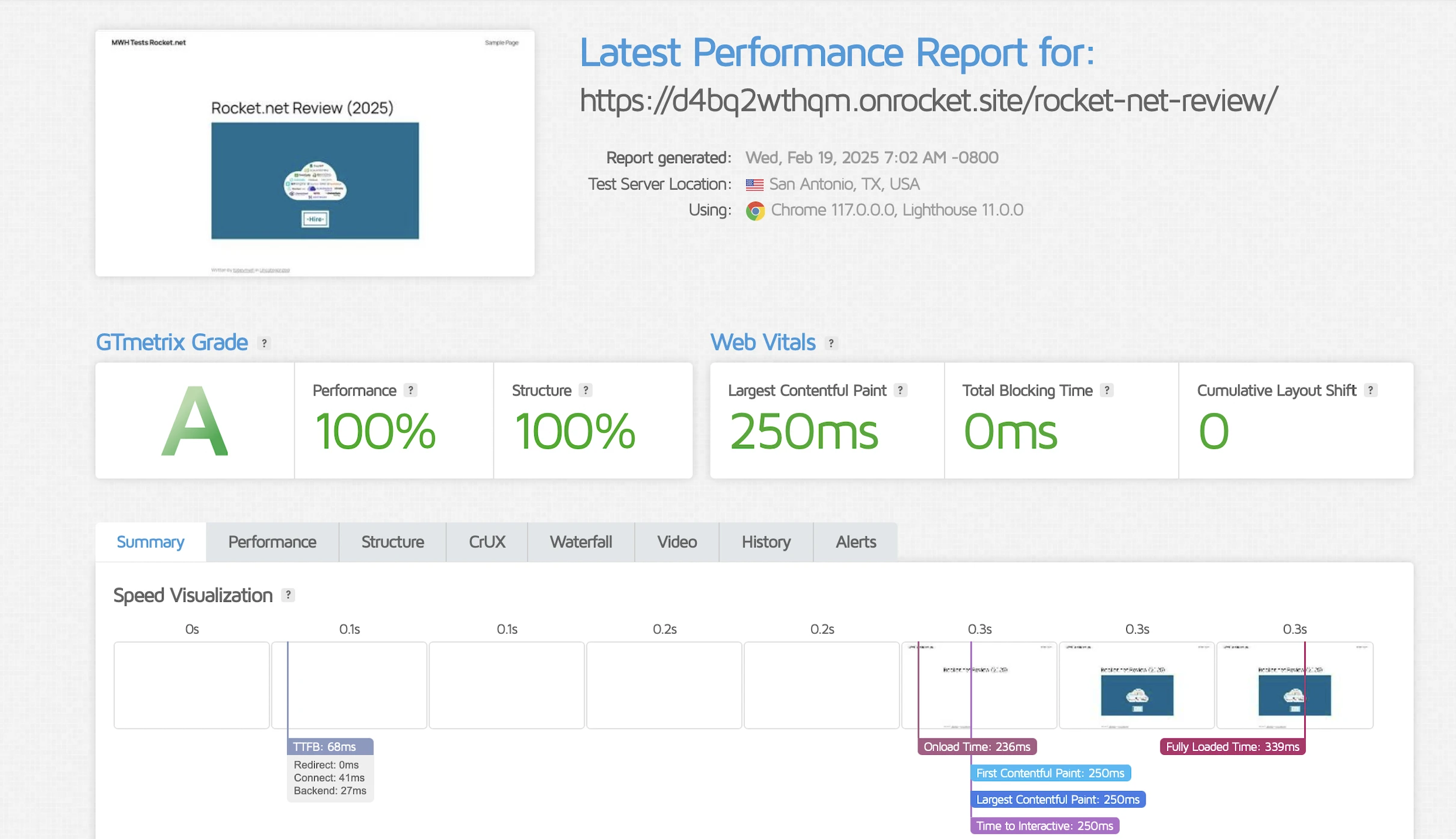GTMetrix said my LCP was an awesome 250ms in Dallas, the second fastest after WPX.
