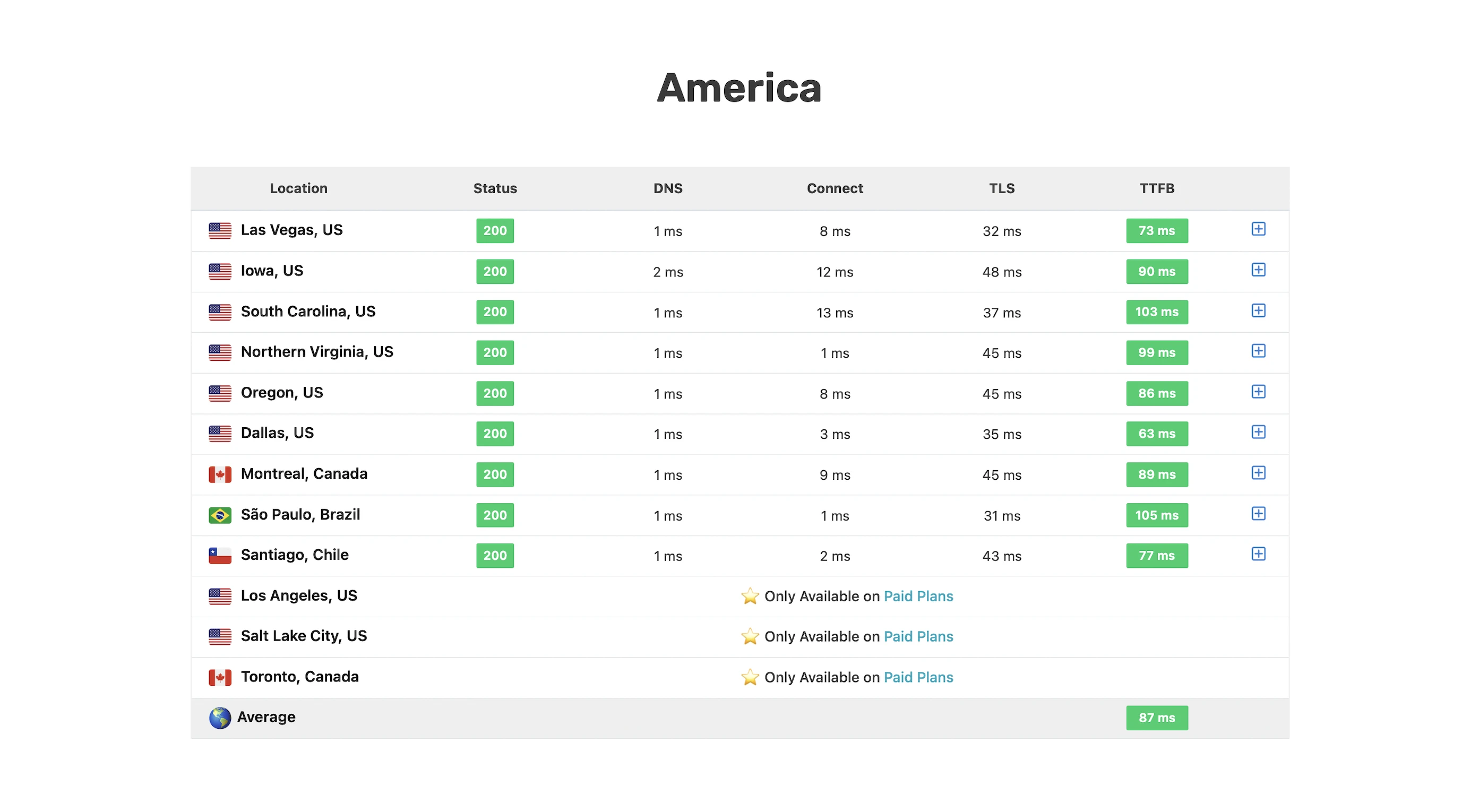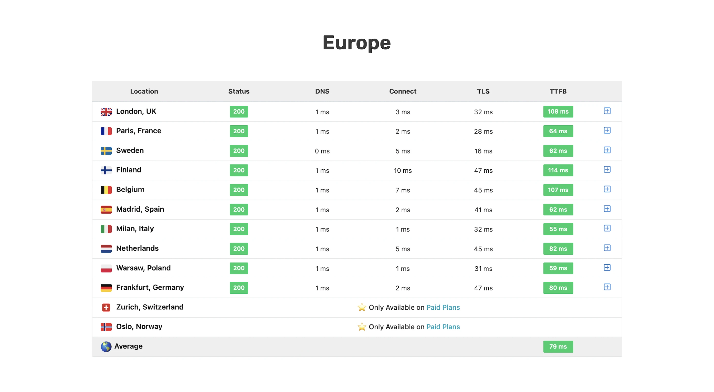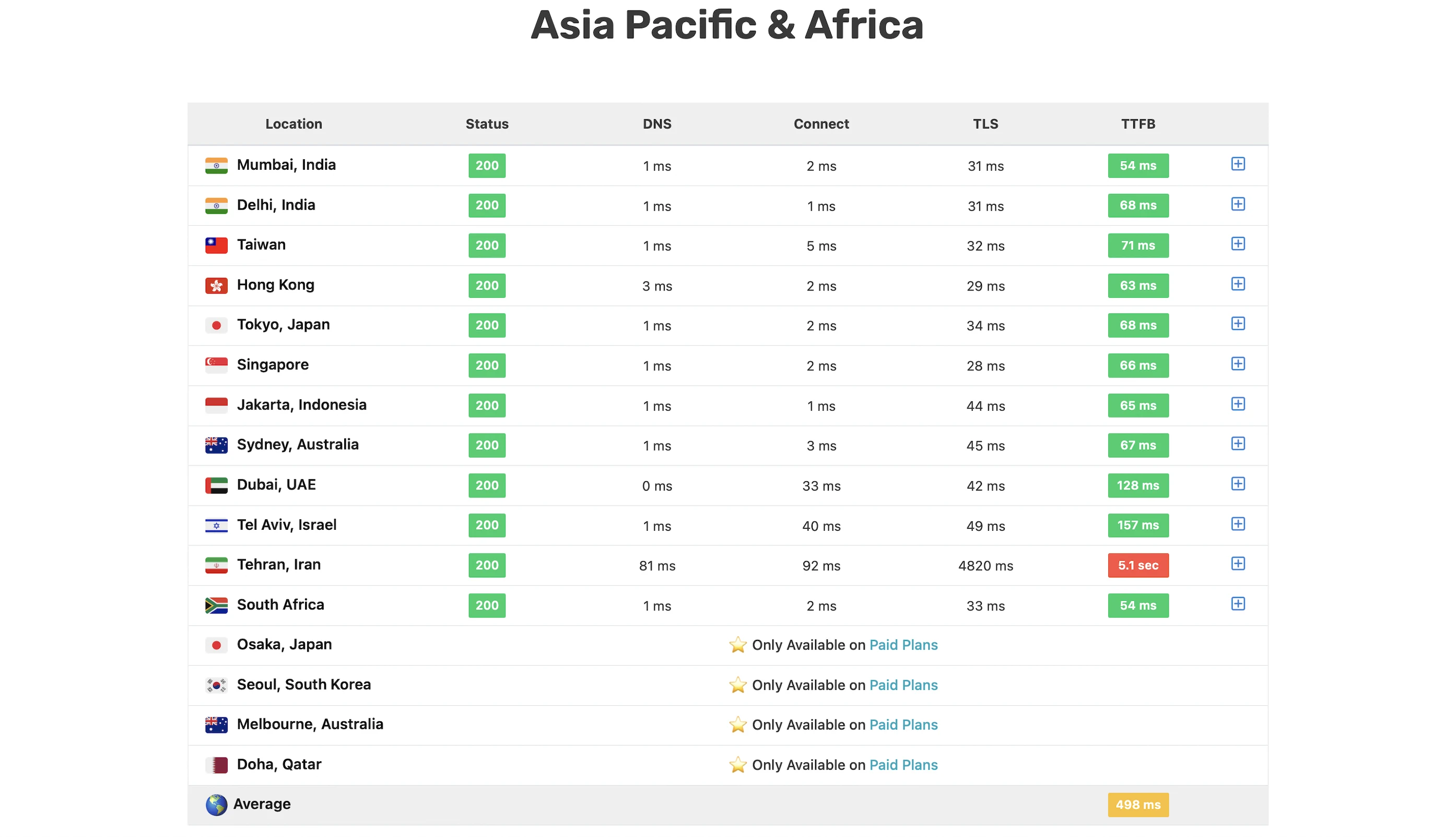 Since Rocket.net uses Cloudflare Enterprise and claims its global TTFB is less than 100ms in at least 3 parts of its website, I wanted to see how fast it is in other parts of the world and if it lives up to its claims.