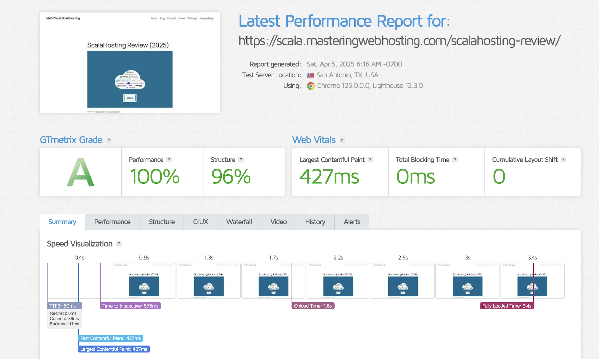 GTMetrix said my Largest Contentful Paint (LCP) was 427ms in Dallas.