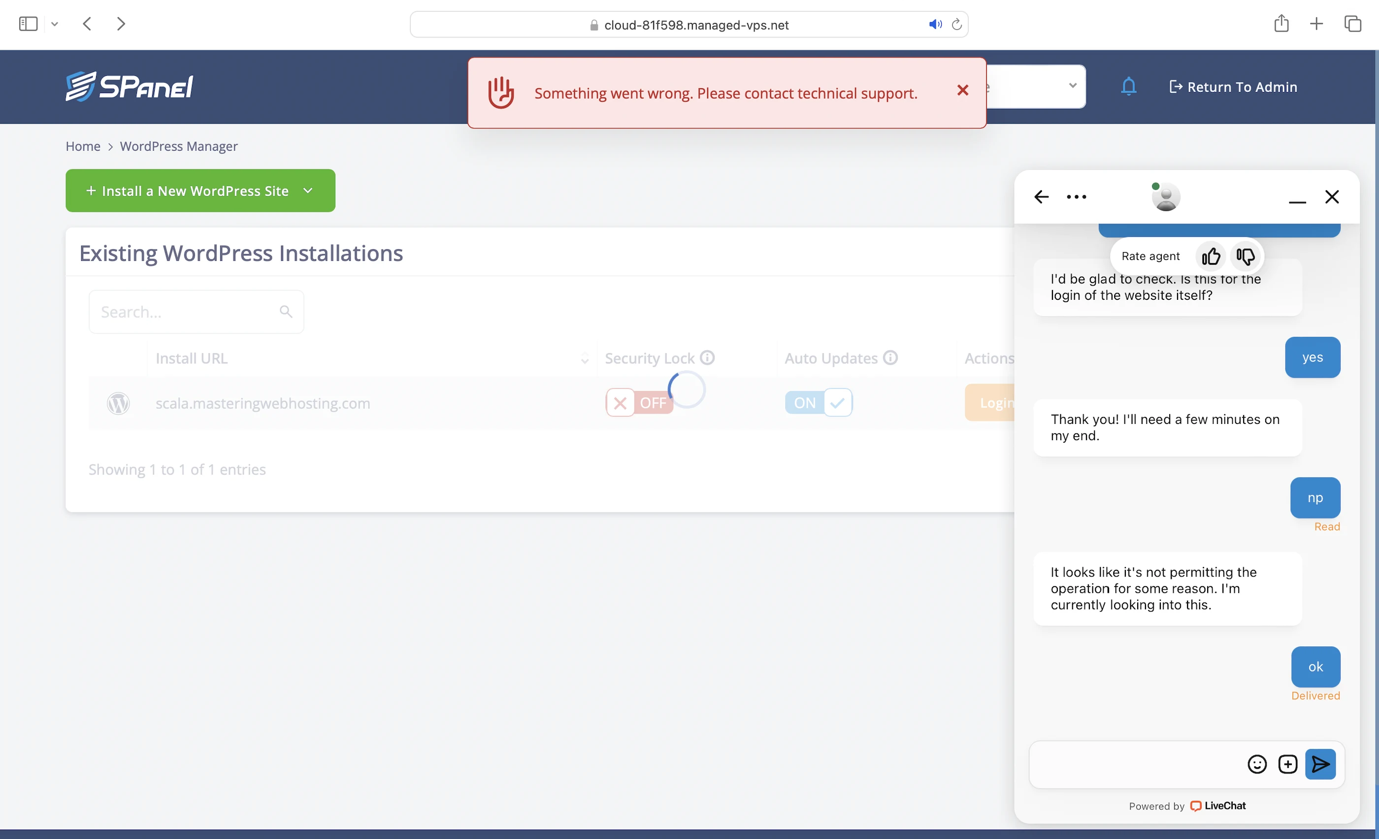 Like I mentioned, but here’s the full story. After entering my site details, I noticed that the “Install WordPress” button was still greyed out. So I reached out to Support, and it took them a while to fix it before I could continue with the installation. But just when I thought I could finally launch WordPress, I hit another error and had to contact Support again. All in all, it took almost 2 hours just to launch my first WordPress website. Not exactly a great first impression.