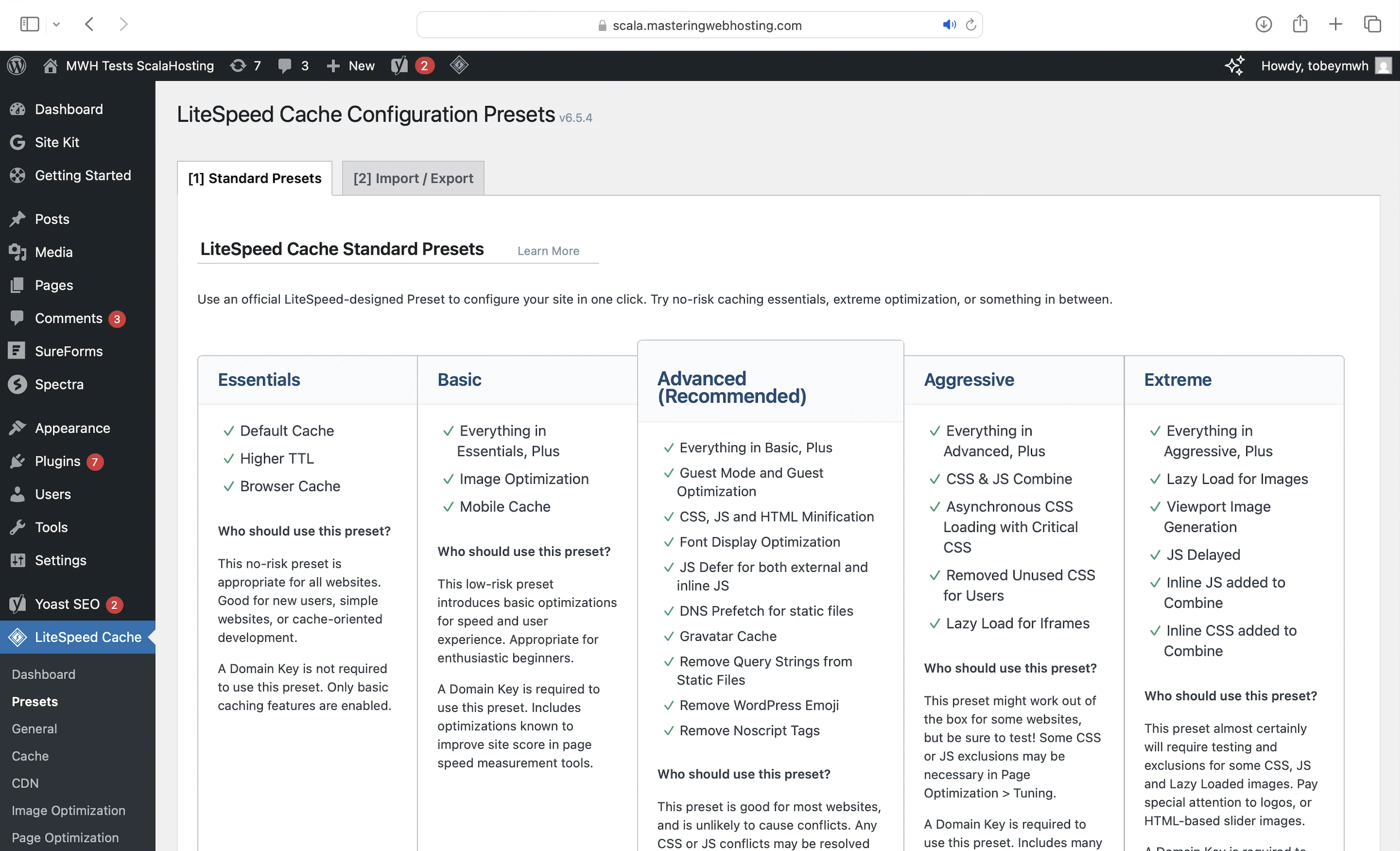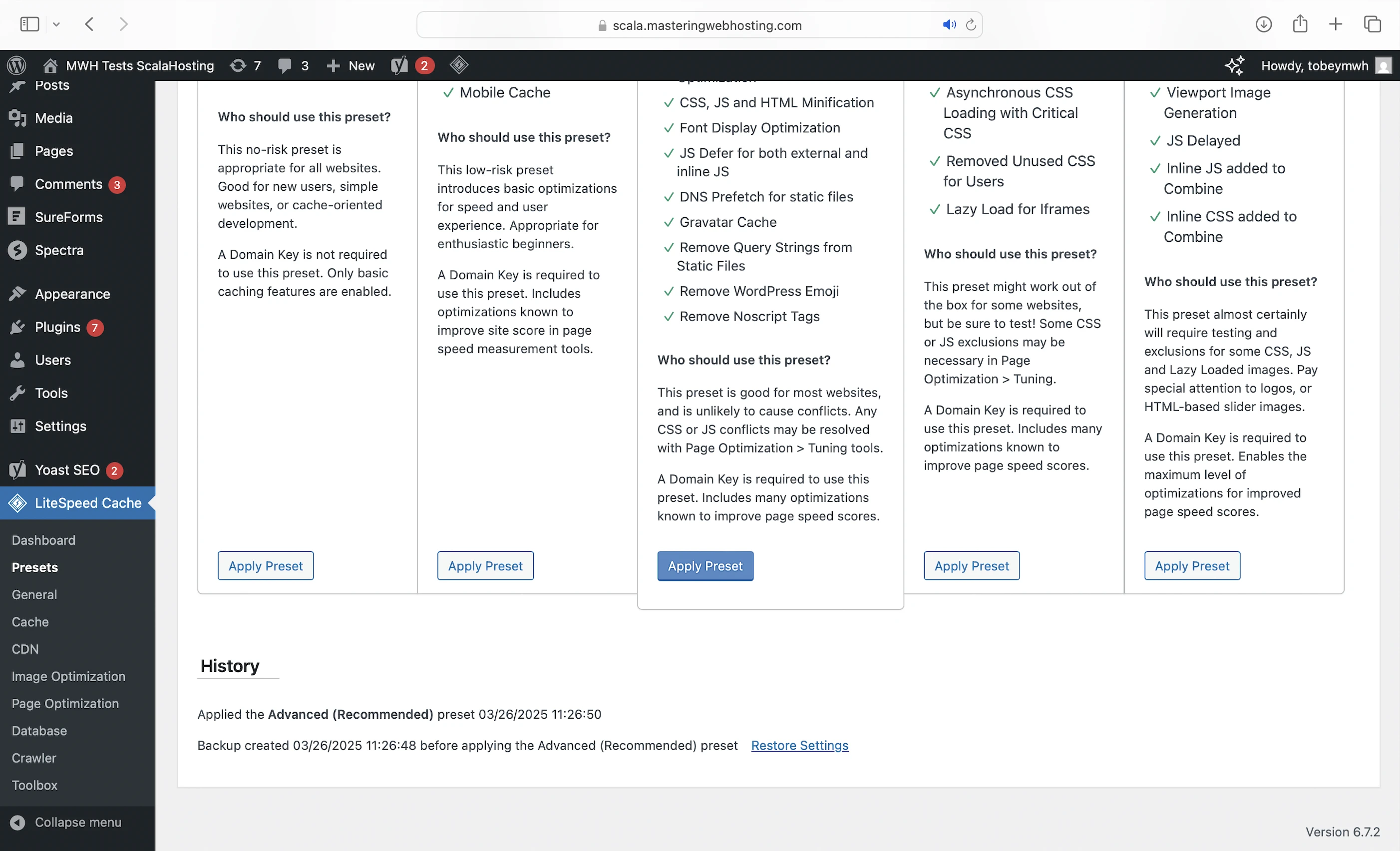 Unlike other hosts, ScalaHosting doesn’t configure LiteSpeed Cache for us, so I did it myself with its Advanced Preset.