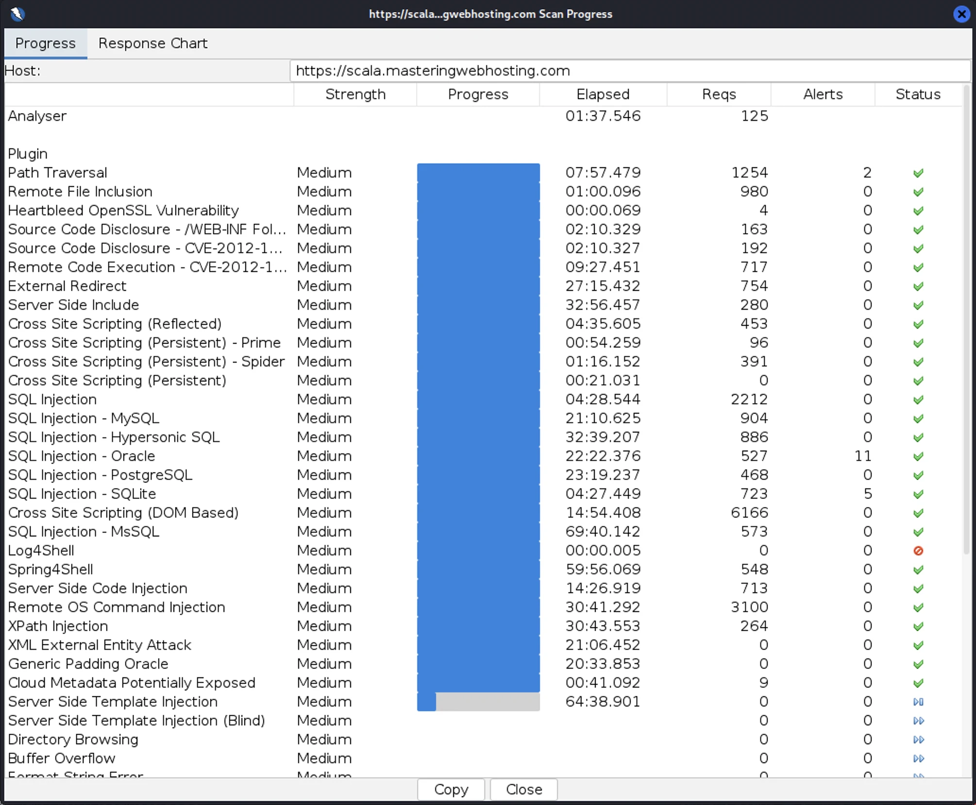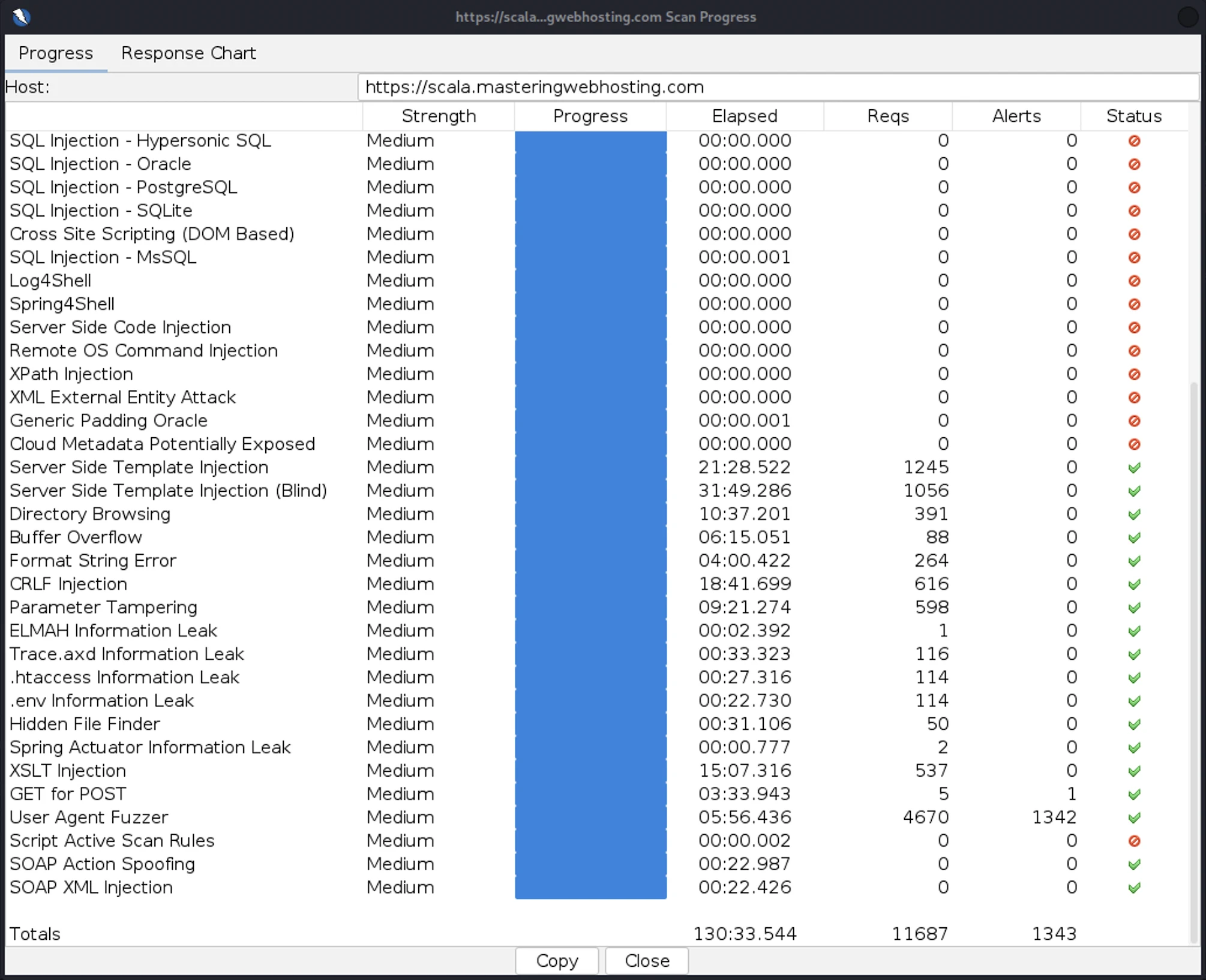 - SQL Injection – Oracle: 11 out of 527 attacks successful. Okay as ScalaHosting doesn’t use Oracle SQL.