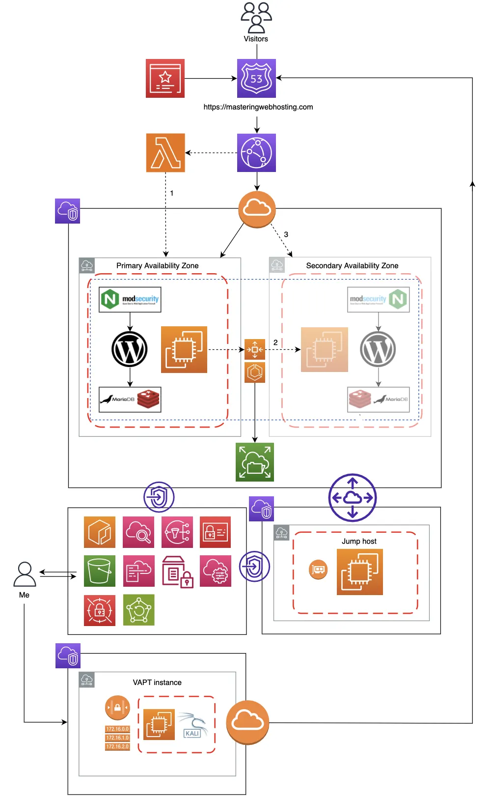 Note: I used Free Tier eligible EC2s for my jump host and VAPT instance to keep overhead low.