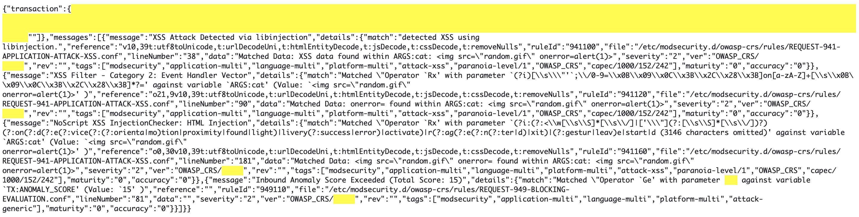 As final proof that it works, here’s what my ModSecurity WAF logs look like:
